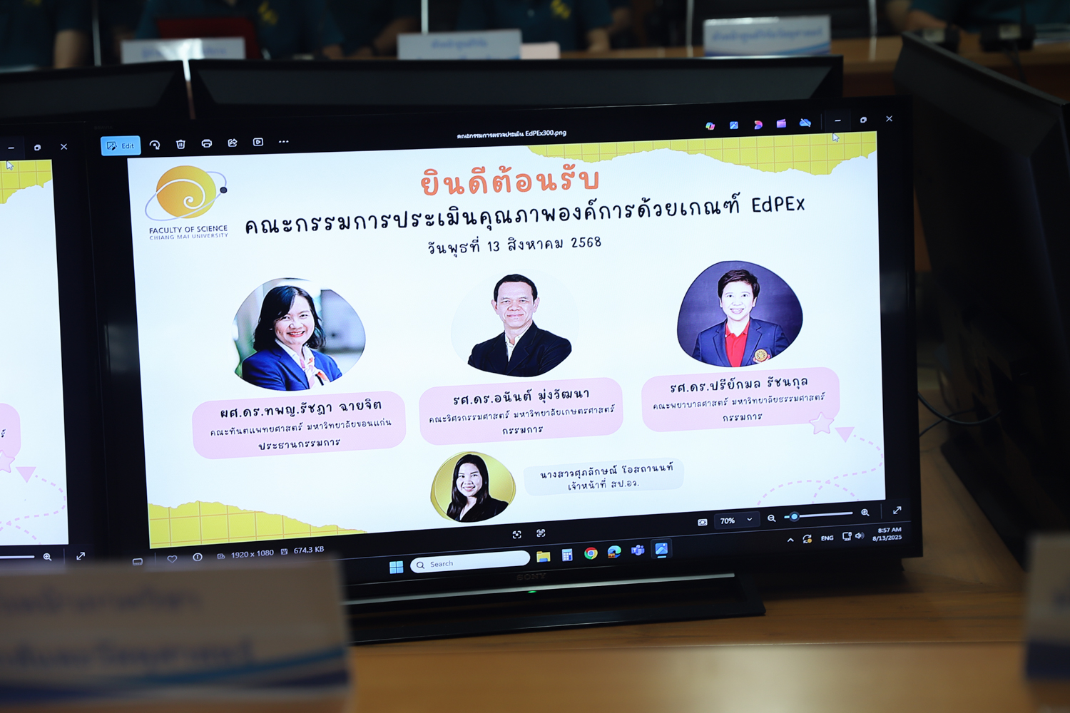 วันที่ 13 สิงหาคม 2568 คณะวิทยาศาสตร์ มหาวิทยาลัยเชียงใหม่ นำโดย รองศาสตราจารย์ ดร.ปิยะพงศ์ เนียมทรัพย์ คณบดีคณะวิทยาศาสตร์ พร้อมด้วยผู้บริหาร และบุคลากร ร่วมให้การต้อนรับคณะผู้ตรวจประเมินคุณภาพองค์กร ตามเกณฑ์คุณภาพการศึกษาเพื่อการดำเนินงานที่เป็นเลิศ EdPEx ระดับ 300 ซึ่งนำโดย ผศ.ดร.ทพญ.รัชฎา ฉายจิต คณะทันตแพทยศาสตร์ มหาวิทยาลัยขอนแก่น ประธานกรรมการ ในโอกาสเข้าตรวจประเมินคุณภาพองค์กรฯ คณะวิทยาศาสตร์ ณ ห้องประชุม ชั้น 2 อาคาร 40 ปี คณะวิทยาศาสตร์