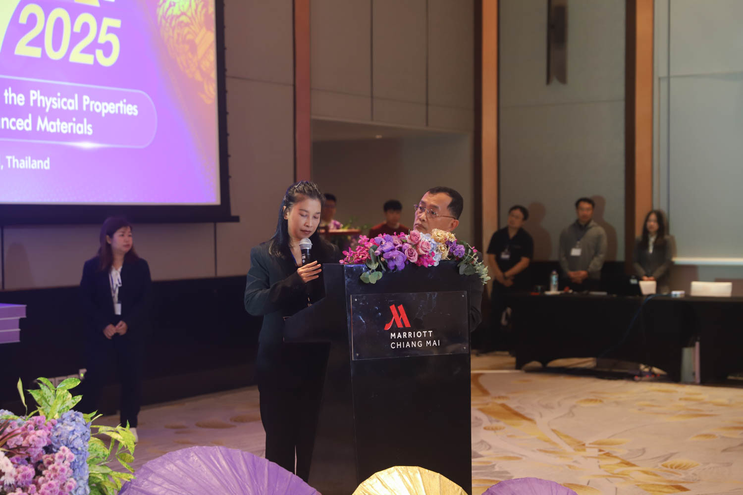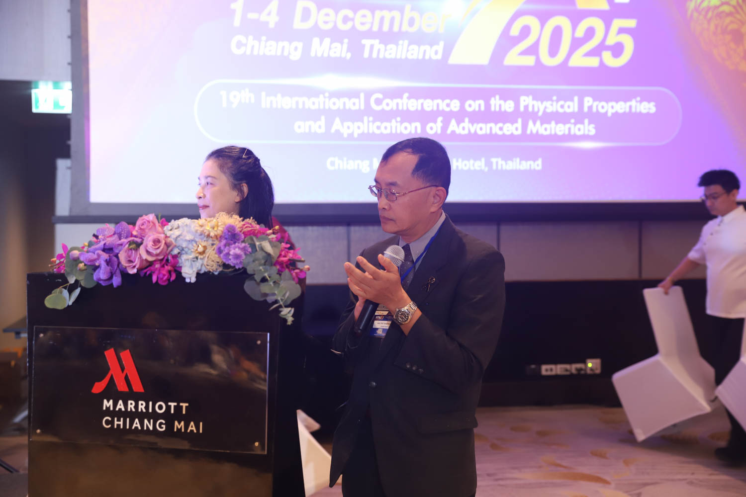 ภายในงานได้รับเกียรติจาก รศ.ดร.วินิตา บุณโยดม รองอธิการบดี มหาวิทยาลัยเชียงใหม่ เป็นประธานเปิดงาน ผศ.ดร.ชัยสิทธิ์ บรรจงประเสริฐ หัวหน้าศูนย์วิจัยวัสดุศาสตร์ คณะวิทยาศาสตร์ กล่าวรายงานการจัดงาน และ รศ.ดร.ชยากร ภูมาศ ผู้ช่วยคณบดี คณะวิทยาศาสตร์ กล่าวต้อนรับผู้เข้าร่วมงาน