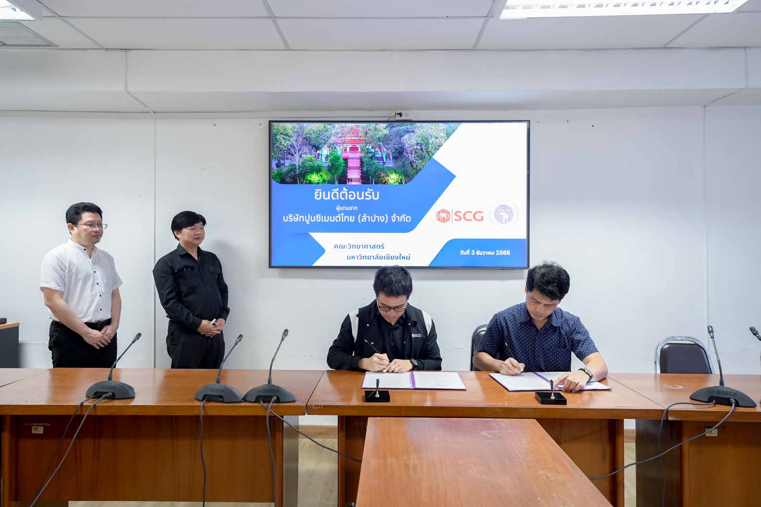 วันที่ 3 ธันวาคม 2568 คณะวิทยาศาสตร์ มหาวิทยาลัยเชียงใหม่ จัดพิธีลงนามบันทึกข้อตกลงความร่วมมือทางวิชาการระหว่างคณะวิทยาศาสตร์ มหาวิทยาลัยเชียงใหม่ และบริษัท ปูนซิเมนต์ไทย (ลำปาง) จำกัด โดยมี รองศาสตราจารย์ ดร. ชยากร ภูมาศ ผู้ช่วยคณบดีคณะวิทยศาสตร์ พร้อมด้วยนักวิจัย และผู้บริหาร บุคลากร บริษัท ปูนซิเมนต์ไทย (ลำปาง) จำกัด ร่วมลงนามฯ และเป็นสักขีพยานในพิธีลงนามฯ ณ ห้องประชุมชั้น 2 อาคาร 40 ปีฯ ซึ่งความร่วมมือในครั้งนี้ นับเป็นก้าวสำคัญในการร่วมกันดำเนินโครงการวิจัย ภายใต้หัวข้อ โครงการสำรวจความหลากหลายของสัตว์ป่ามีกระดูกสันหลังในพื้นที่ เพื่อนำข้อมูลจากการศึกษาไปสู่การบริหารจัดการในด้านต่างๆ อย่างเหมาะสม และถ่ายทอดองค์ความรู้ให้เกิดประโยชน์ต่อไป