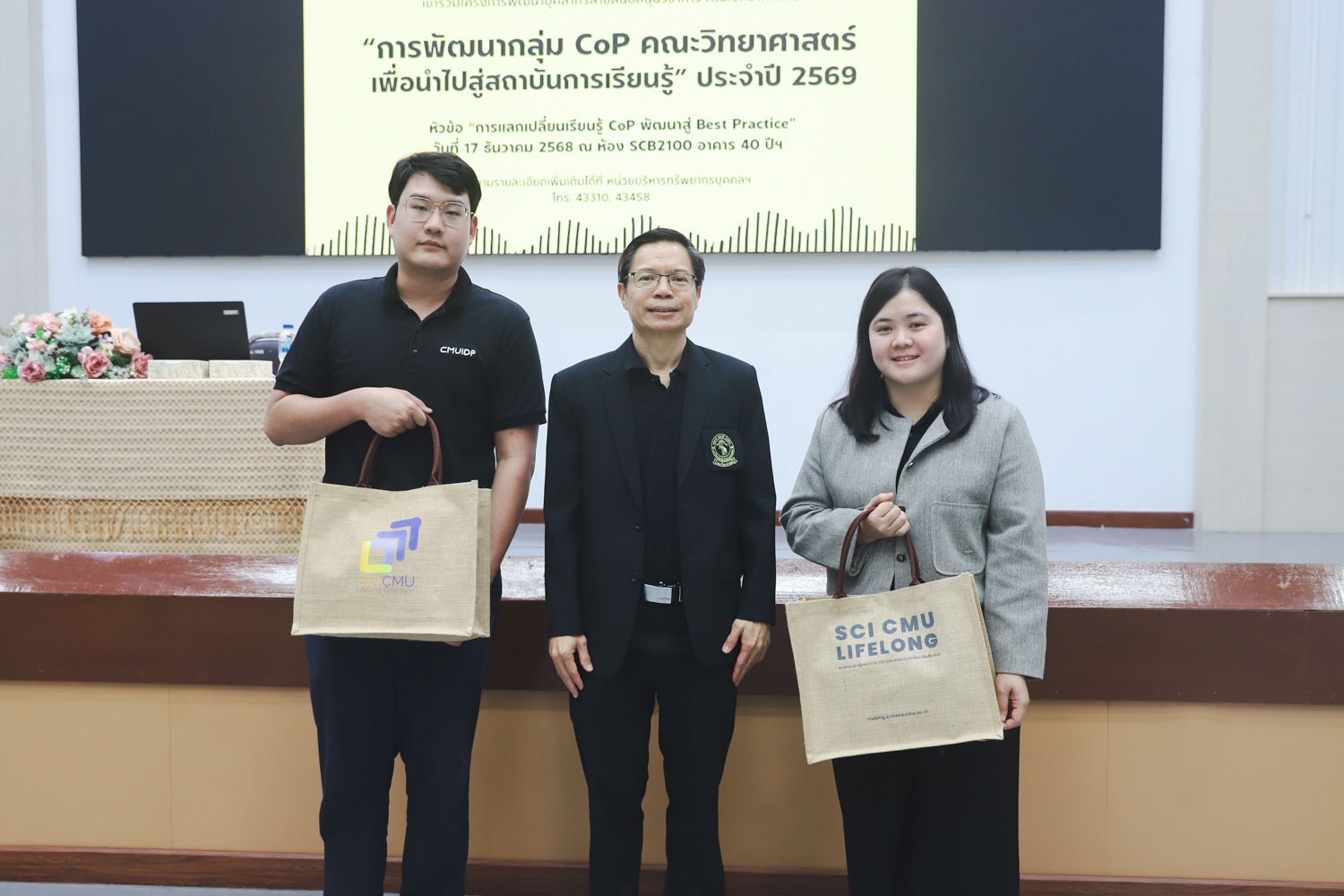 วันที่ 17 ธันวาคม 2568 รศ.ดร.ปิยะพงศ์ เนียมทรัพย์ คณบดีคณะวิทยาศาสตร์ ให้เกียรติเป็นประธานเปิดโครงการพัฒนาบุคลากรสายสนับสนุนวิชาการ คณะวิทยาศาสตร์ หัวข้อ “การแลกเปลี่ยนเรียนรู้ CoP พัฒนาสู่ Best Practice” ณ ห้อง SCB2100 อาคาร 40 ปีฯ ภายในงานมีการบรรยายชี้แจงแนวทางการดำเนินการ CoP ปีงบประมาณ 2569 โดยนายพิชัย นาคปฐม เลขานุการคณะวิทยาศาสตร์ บรรยาย “CMU IDP” โดย เจ้าหน้าที่จากกองทรัพยากรทุนมนุษย์ มช.