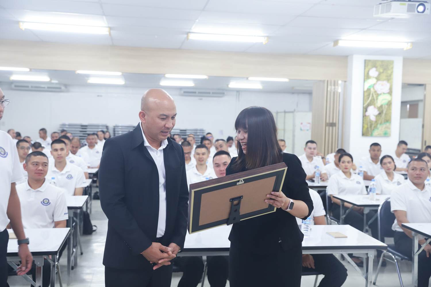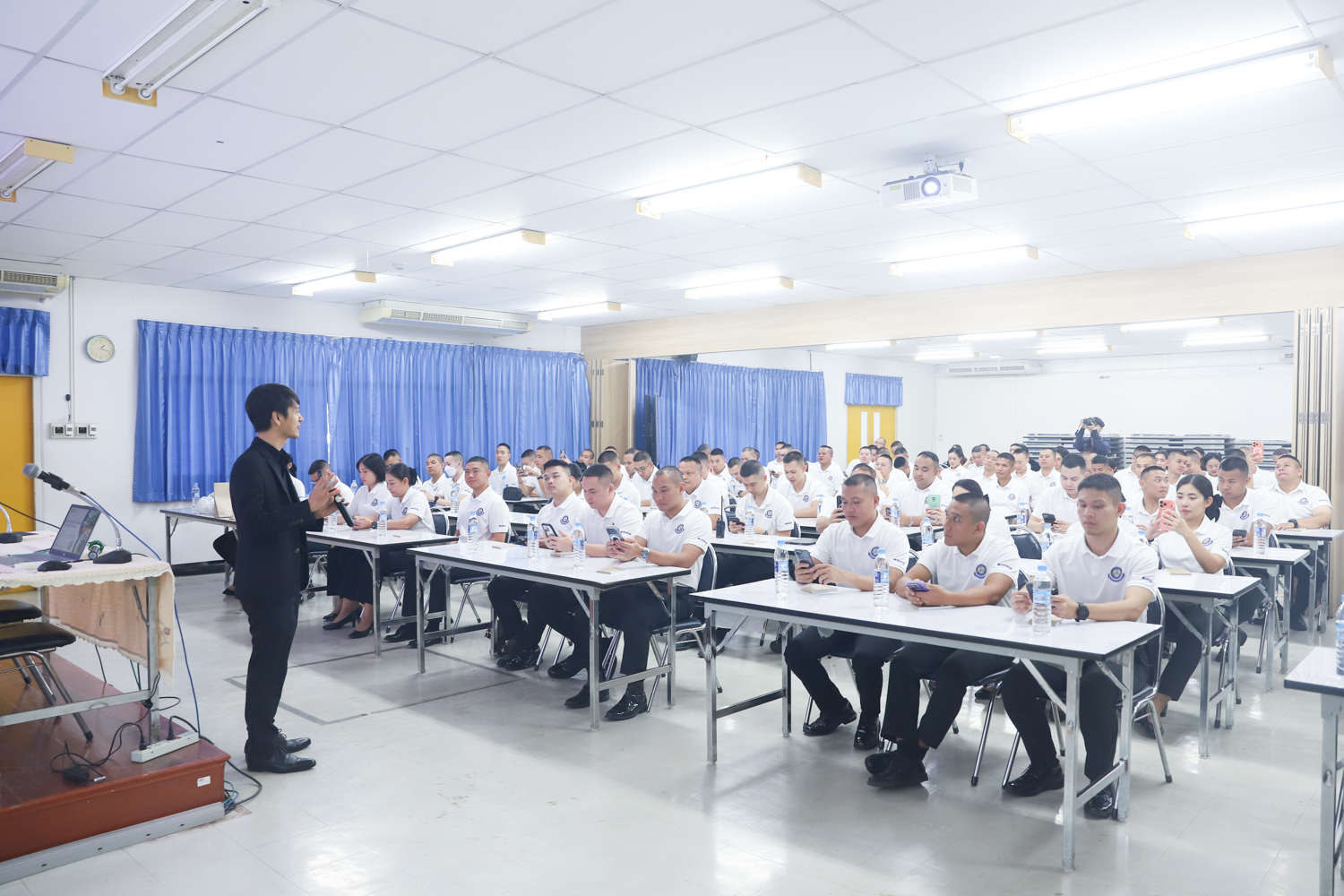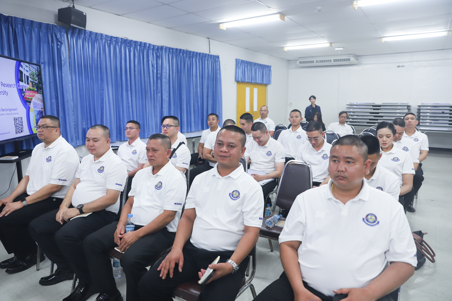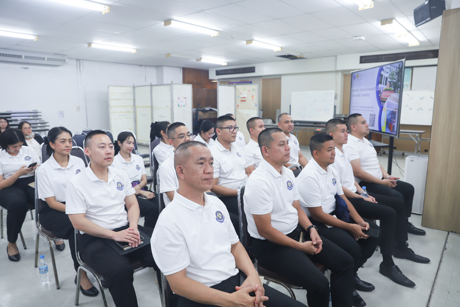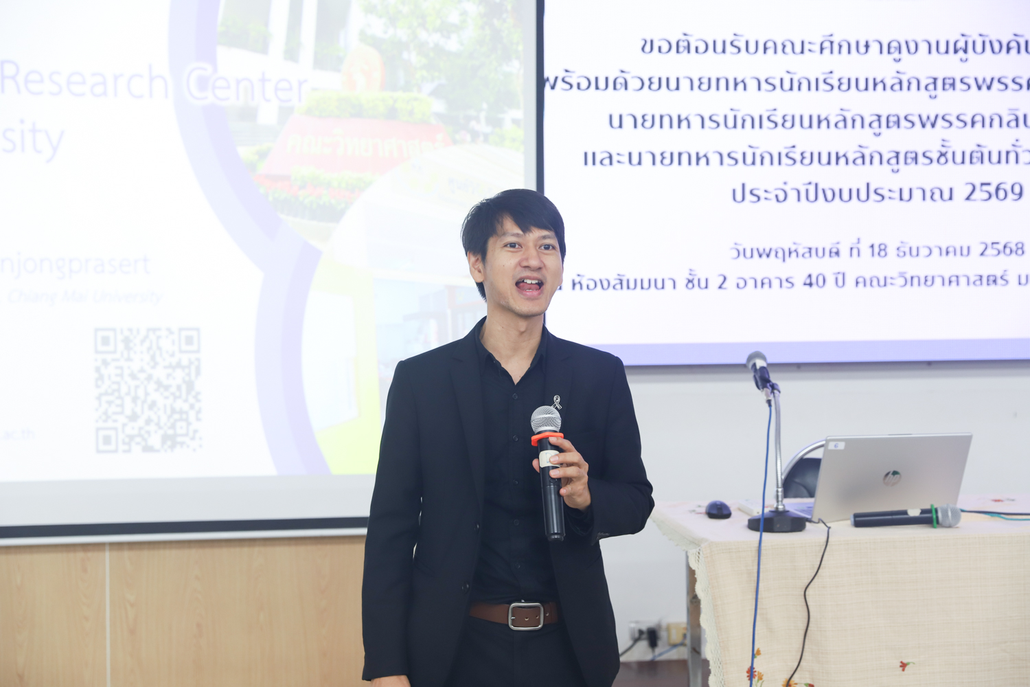 ผู้ช่วยศาสตราจารย์ ดร.ชัยสิทธิ์ บรรจงประเสริฐ หัวหน้าศูนย์วิจัยวัสดุศาสตร์ คณะวิทยาศาสตร์ มหาวิทยาลัยเชียงใหม่ กล่าวต้อนรับ พร้อมกับบรรยายแนะนำภาพรวมศูนย์วิจัยวัสดุศาสตร์ คณะวิทยาศาสตร์ ให้แก่คณะผู้บังคับบัญชาพร้อมด้วยนายทหารนักเรียน หลักสูตรพรรคนาวิน รุ่นที่ 76 นายทหารนักเรียนหลักสูตรพรรคกลิน รุ่นที่ 47 และนายทหารนักเรียน หลักสูตรชั้นต้นทั่วไป รุ่นที่ 49 ประจำปีงบประมาณ 2569 ในโอกาสเข้าศึกษาดูงานด้านวัสดุศาสตร์ และเยี่ยมชมห้องปฏิบัติการของคณะวิทยาศาสตร์ ในวันพฤหัสบดีที่ 18 ธันวาคม 2568 ณ ห้องสัมมนา ชั้น 2 อาคาร 40 ปี คณะวิทยาศาสตร์ และหน่วยงานที่เกี่ยวข้อง