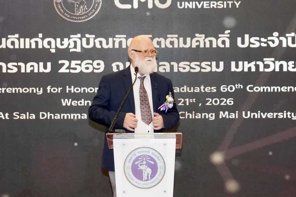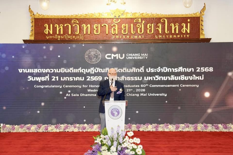 รศ.ดร.ปิยะพงศ์ เนียมทรัพย์ คณบดีคณะวิทยาศาสตร์ พร้อมด้วยผู้บริหารและบุคลากร ร่วมแสดงความยินดีแก่ดุษฎีบัณฑิตกิตติมศักดิ์ ผู้ได้รับพระราชทานปริญญากิตติมศักดิ์ ในพิธีพระราชทานปริญญาบัตร ครั้งที่ 60 ของมหาวิทยาลัยเชียงใหม่ เพื่อเชิดชูเกียรติบุคคลผู้มีผลงานเป็นที่ประจักษ์และสร้างคุณประโยชน์ต่อสังคมในหลากหลายสาขา ในวันพุธที่ 21 มกราคม 2569 ณ ศาลาธรรม มช.