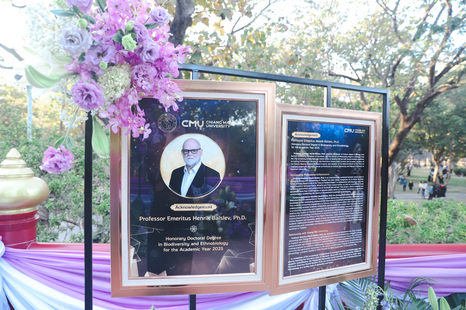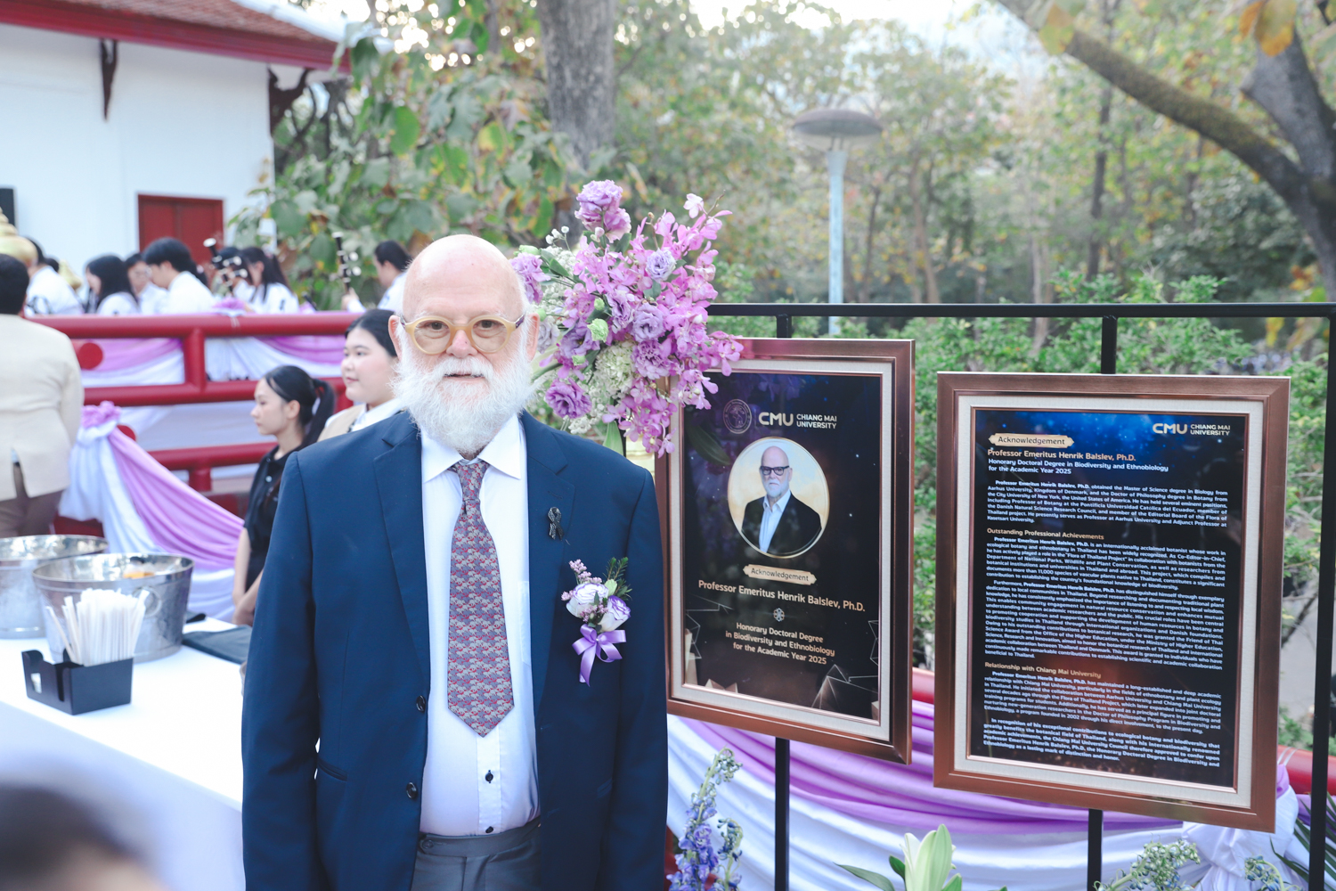 ศาสตราจารย์เกียรติคุณ ดร.เฮนริก แบล์สลูว์ สำเร็จการศึกษาวิทยาศาสตรมหาบัณฑิต สาขาวิชาชีววิทยา จาก Aarhus University ประเทศเดนมาร์ก และปรัชญาดุษฎีบัณฑิต สาขาวิชาพฤกษศาสตร์ จาก The City University of New York ประเทศสหรัฐอเมริกา เคยดำรงตำแหน่งหน้าที่สำคัญ อาทิ ศาสตราจารย์ด้านพฤกษศาสตร์ The Pontificia Universidad Católica del Ecuador ประเทศเอกวาดอร์ สมาชิกของสภาวิจัยทางธรรมชาติวิทยาเดนมาร์ก และสมาชิกคณะบรรณาธิการของวารสารพฤกษศาสตร์ไทย ปัจจุบันดำรงตำแหน่งศาสตราจารย์แห่ง Aarhus University และศาสตราจารย์พิเศษ มหาวิทยาลัยเกษตรศาสตร์