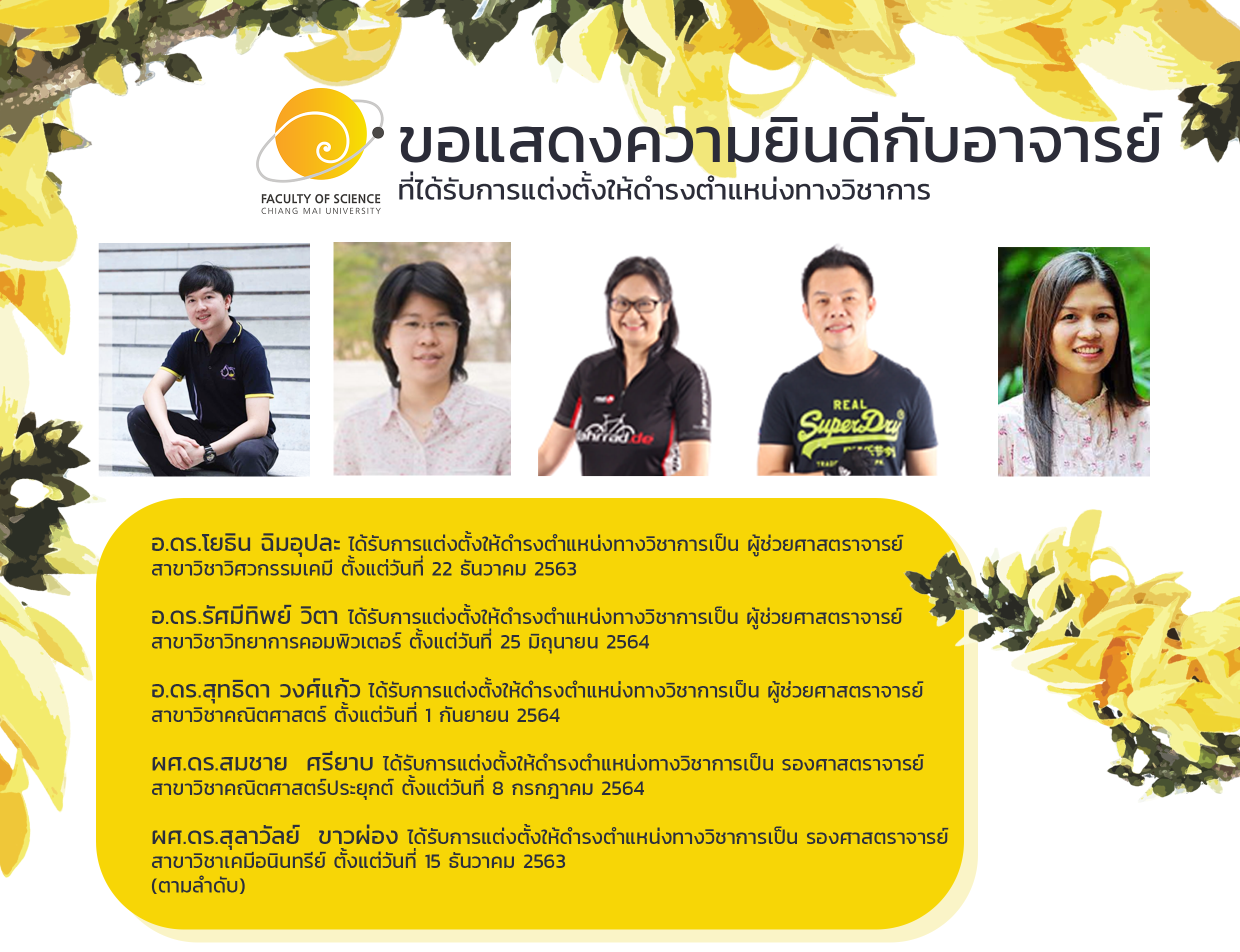 ขอแสดงความยินดีกับอาจารย์ทั้ง 5 ท่าน ที่ได้รับการแต่งตั้งให้ดำรงตำแหน่งทางวิชาการ