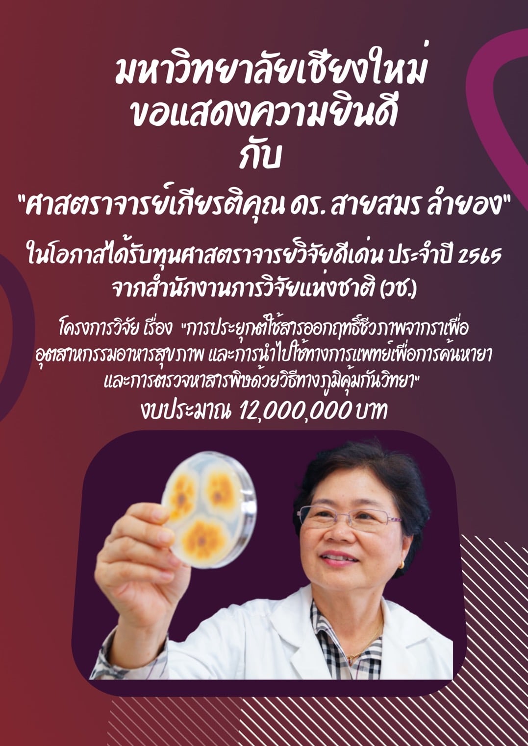 ขอแสดงความยินดีกับอาจารย์ได้รับทุนศาสตราจารย์วิจัยดีเด่น ประจำปี 2565 จาก วช. 12 ล้านบาท