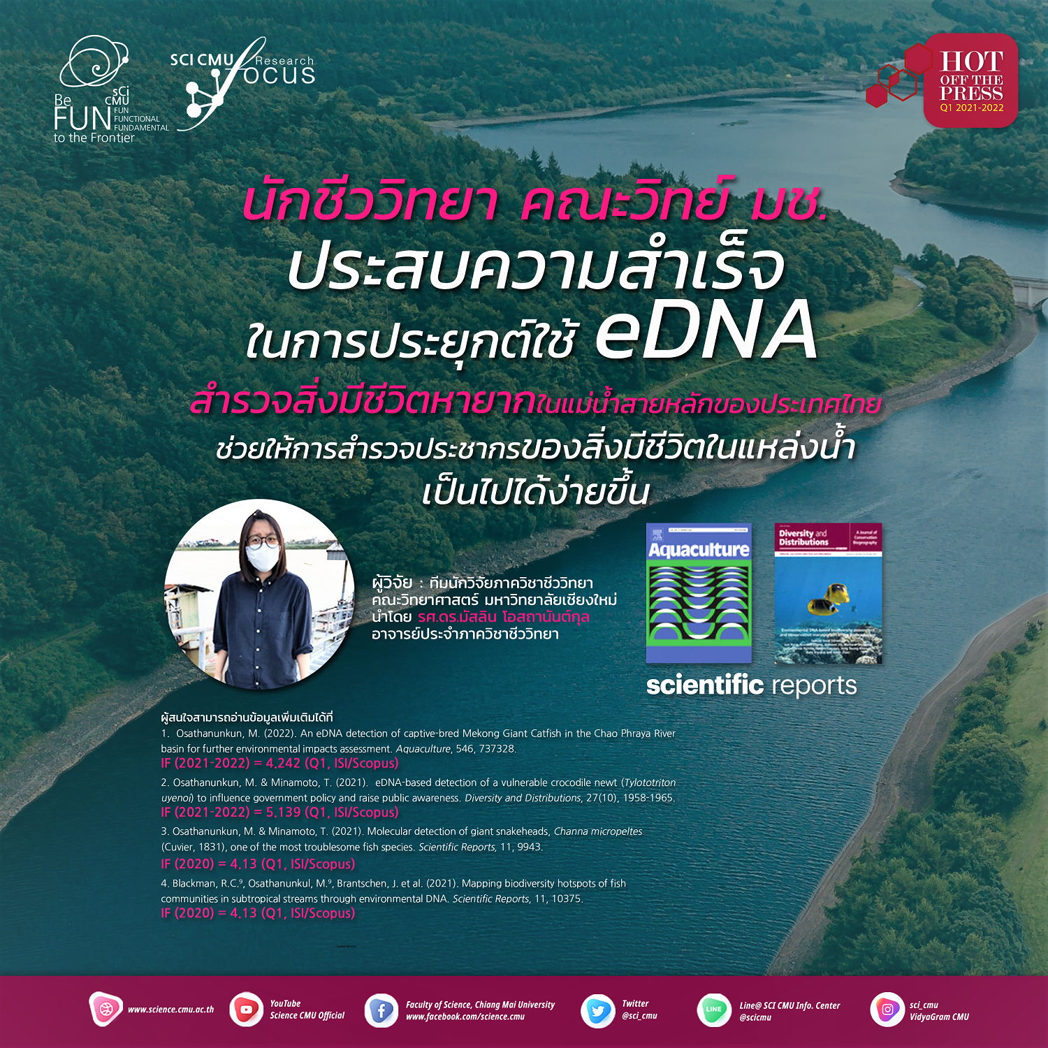 นักชีววิทยา คณะวิทย์ มช. ประสบความสำเร็จในการประยุกต์ใช้ eDNA สำรวจสิ่งมีชีวิตหายากในแม่น้ำสายหลักของประเทศไทย