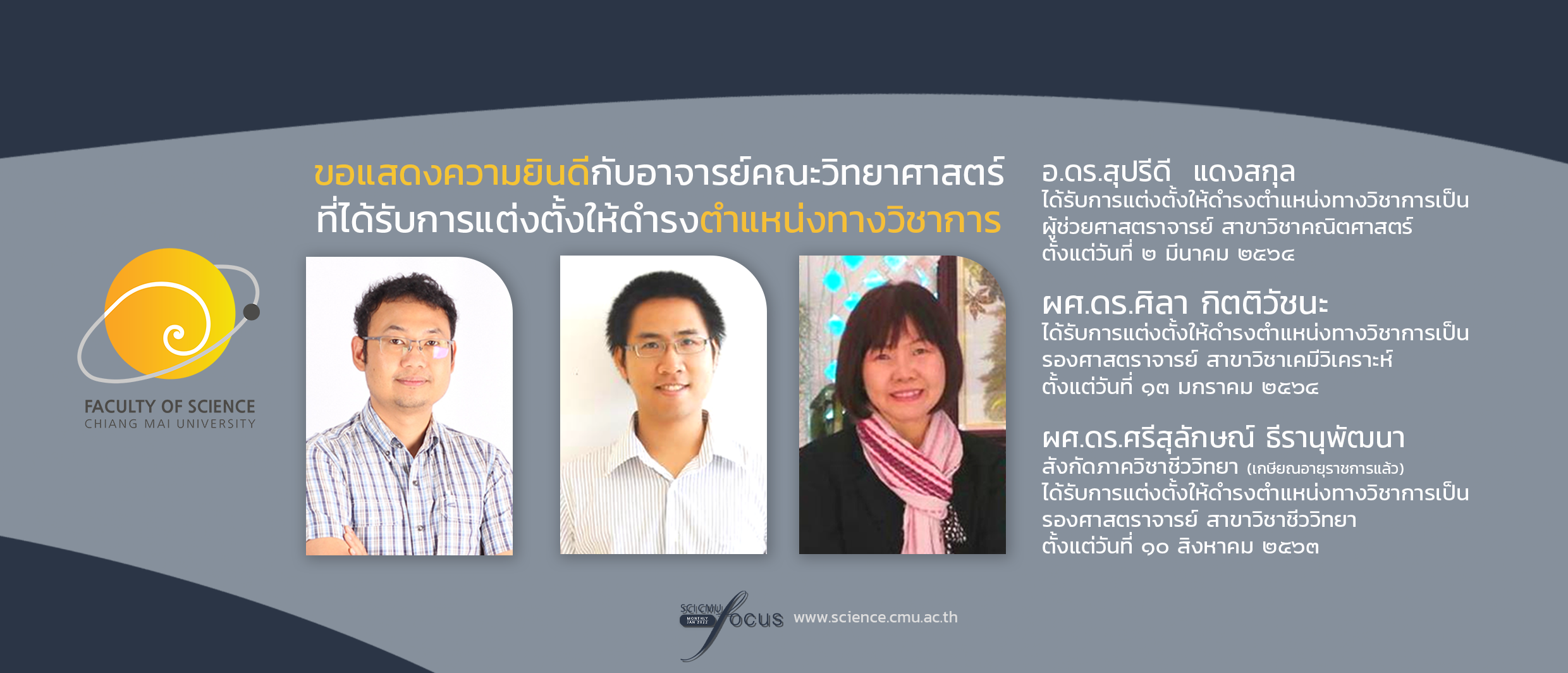 ขอแสดงความยินดีกับอาจารย์ 3 ท่าน ที่ได้รับการแต่งตั้งให้ดำรงตำแหน่งทางวิชาการ