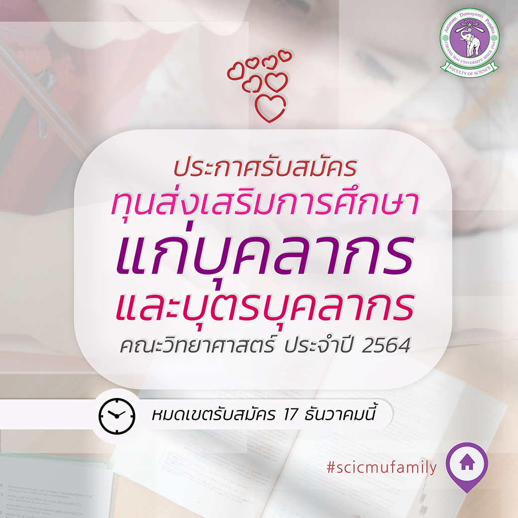 ประกาศรับสมัครทุนส่งเสริมการศึกษาแก่บุคลากรและบุตรบุคลากร คณะวิทยาศาสตร์ ประจำปี 2564