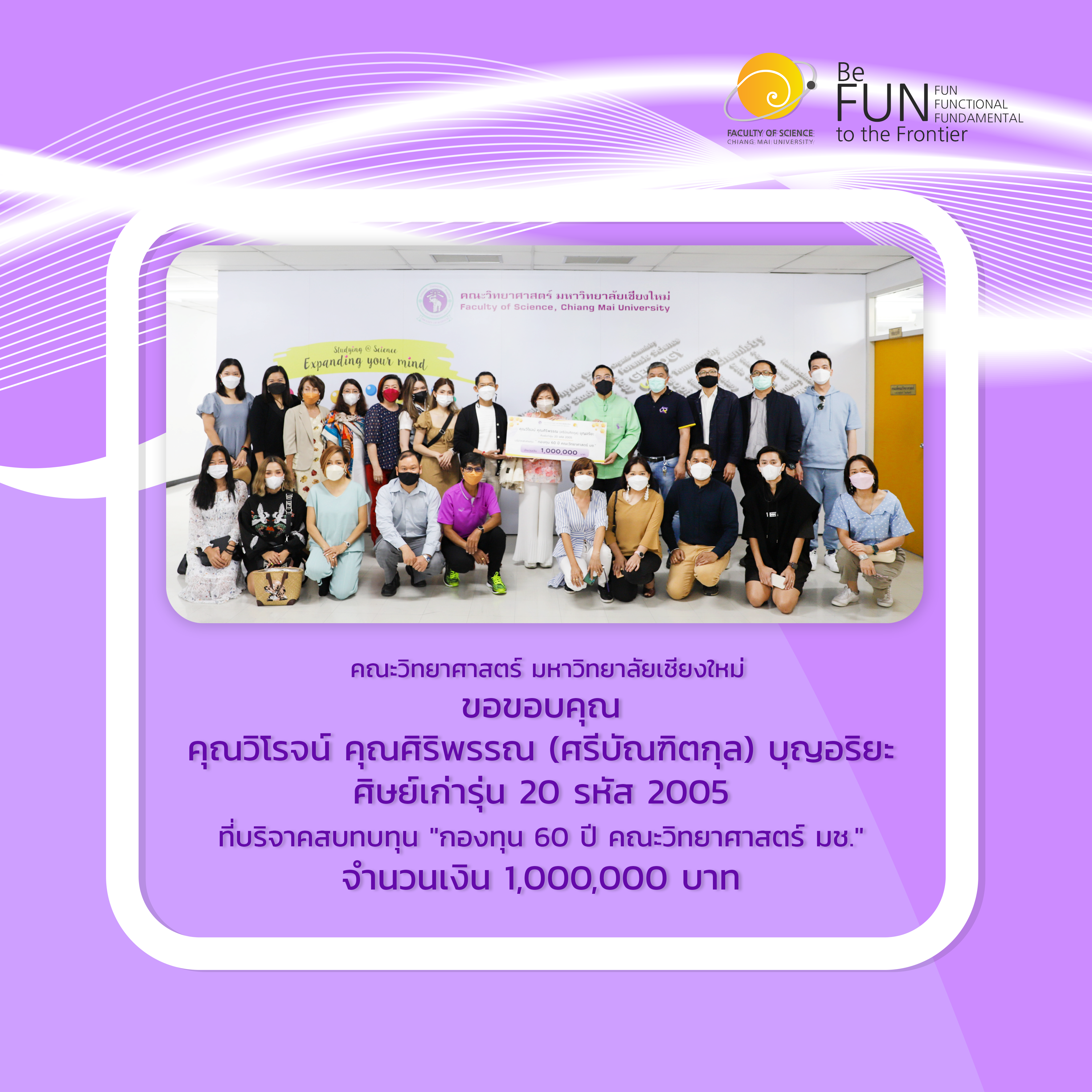 ขอขอบคุณศิษย์เก่าที่ร่วมบริจาคเงินสมทบกองทุน 60 ปี คณะวิทยาศาสตร์ จำนวน 1 ล้านบาท
