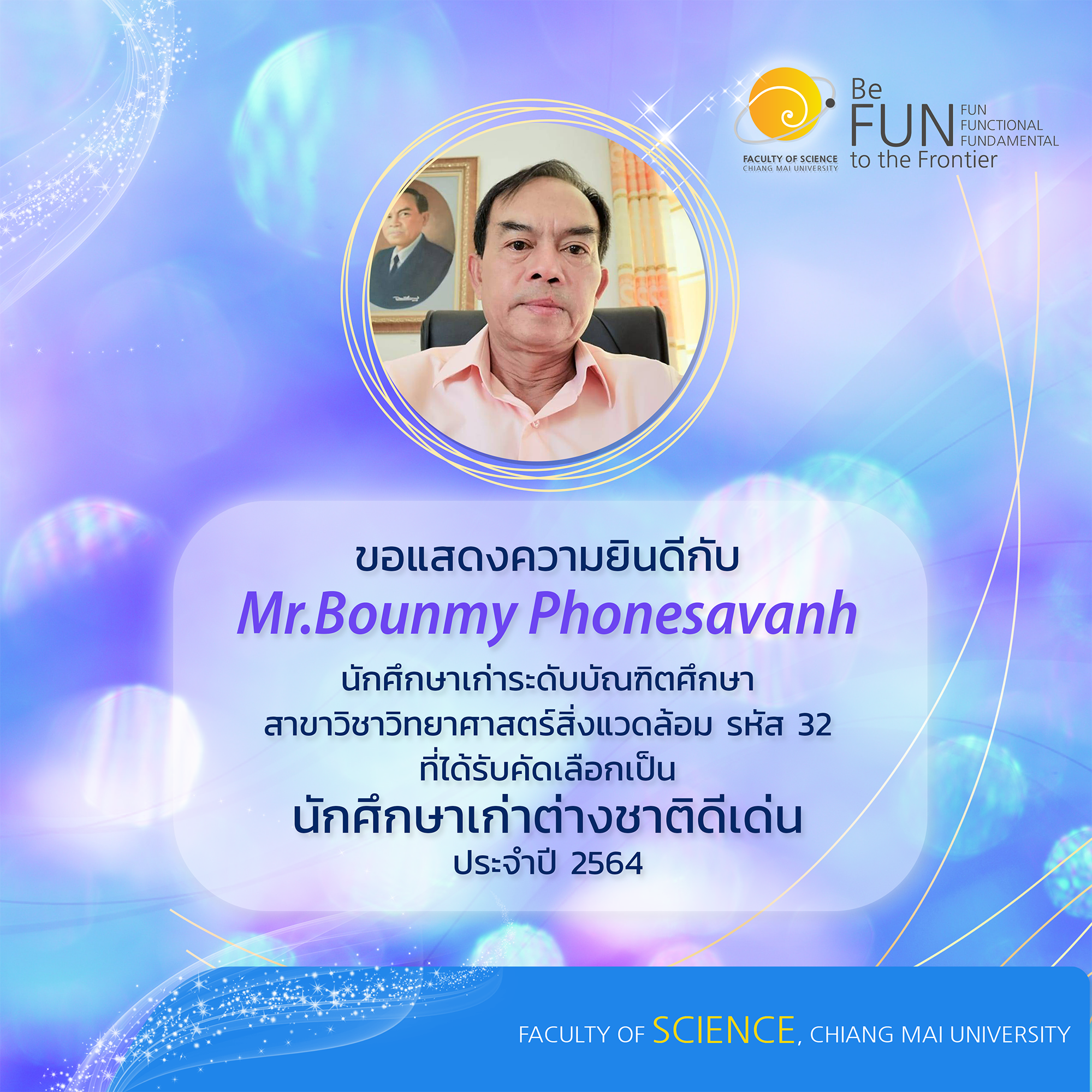 ขอแสดงความยินดีกับนักศึกษาเก่าระดับบัณฑิตศึกษาคณะวิทยาศาสตร์ ที่ได้รับคัดเลือกเป็นนักศึกษาเก่าต่างชาติดีเด่น ประจำปีการศึกษา 2564