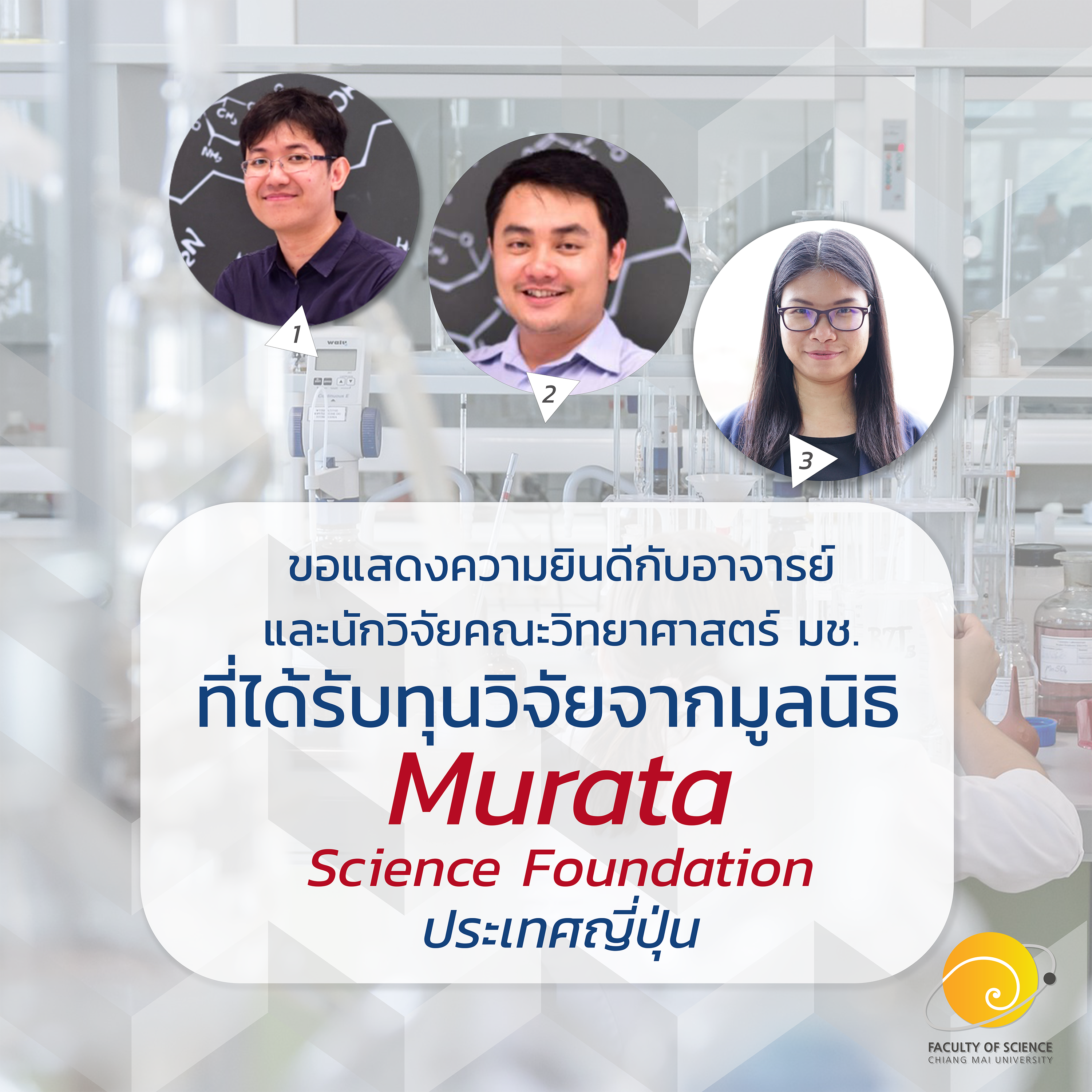 ขอแสดงความยินดีกับอาจารย์และนักวิจัยคณะวิทยาศาสตร์ 3 ท่าน ที่ได้รับทุนวิจัยจากมูลนิธิ Murata Science Foundation ประเทศญี่ปุ่น
