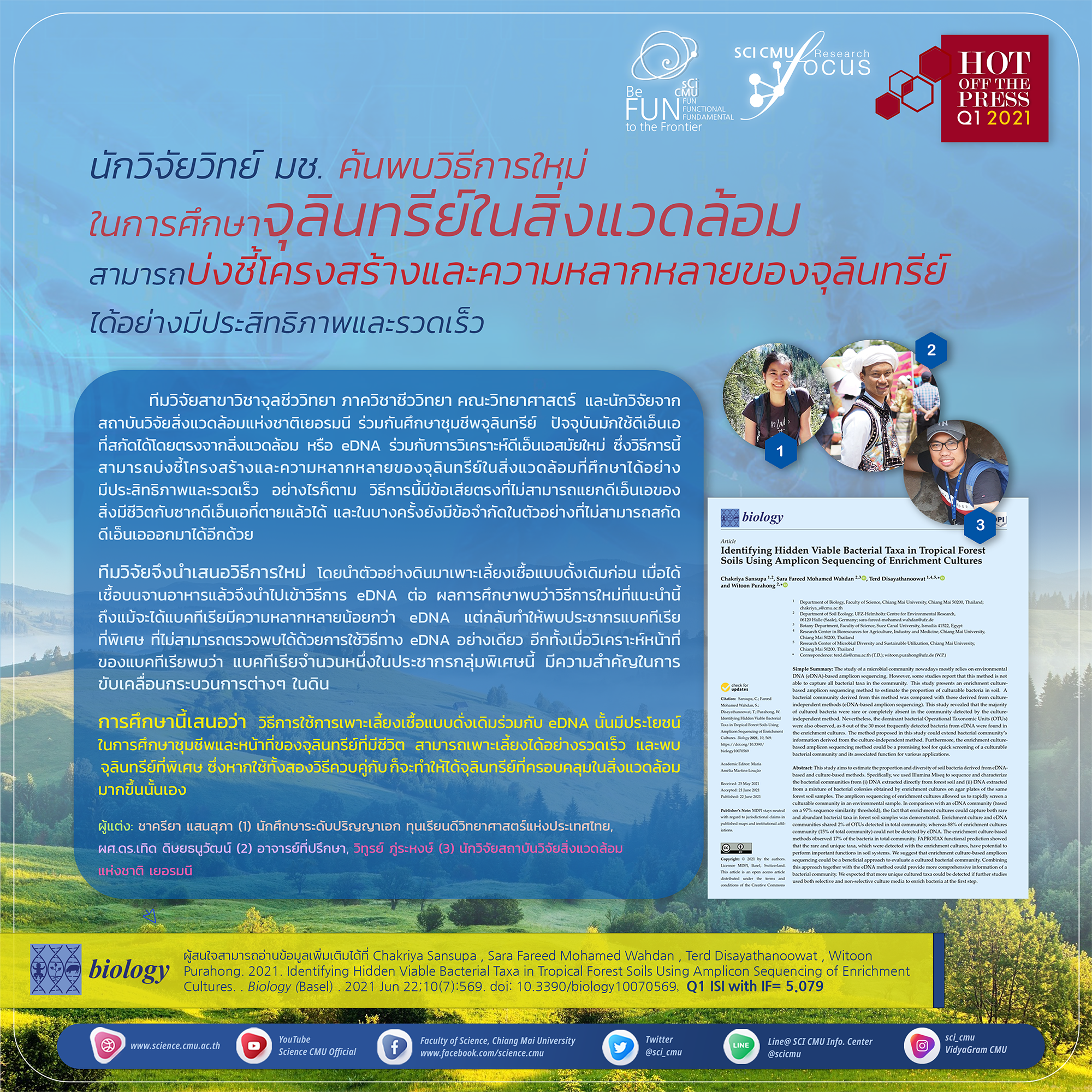 นักวิจัยวิทย์ มช. ค้นพบวิธีการใหม่ ในการศึกษาจุลินทรีย์ในสิ่งแวดล้อม สามารถบ่งชี้โครงสร้างและความหลากหลายของจุลินทรีย์ ได้อย่างมีประสิทธิภาพและรวดเร็ว