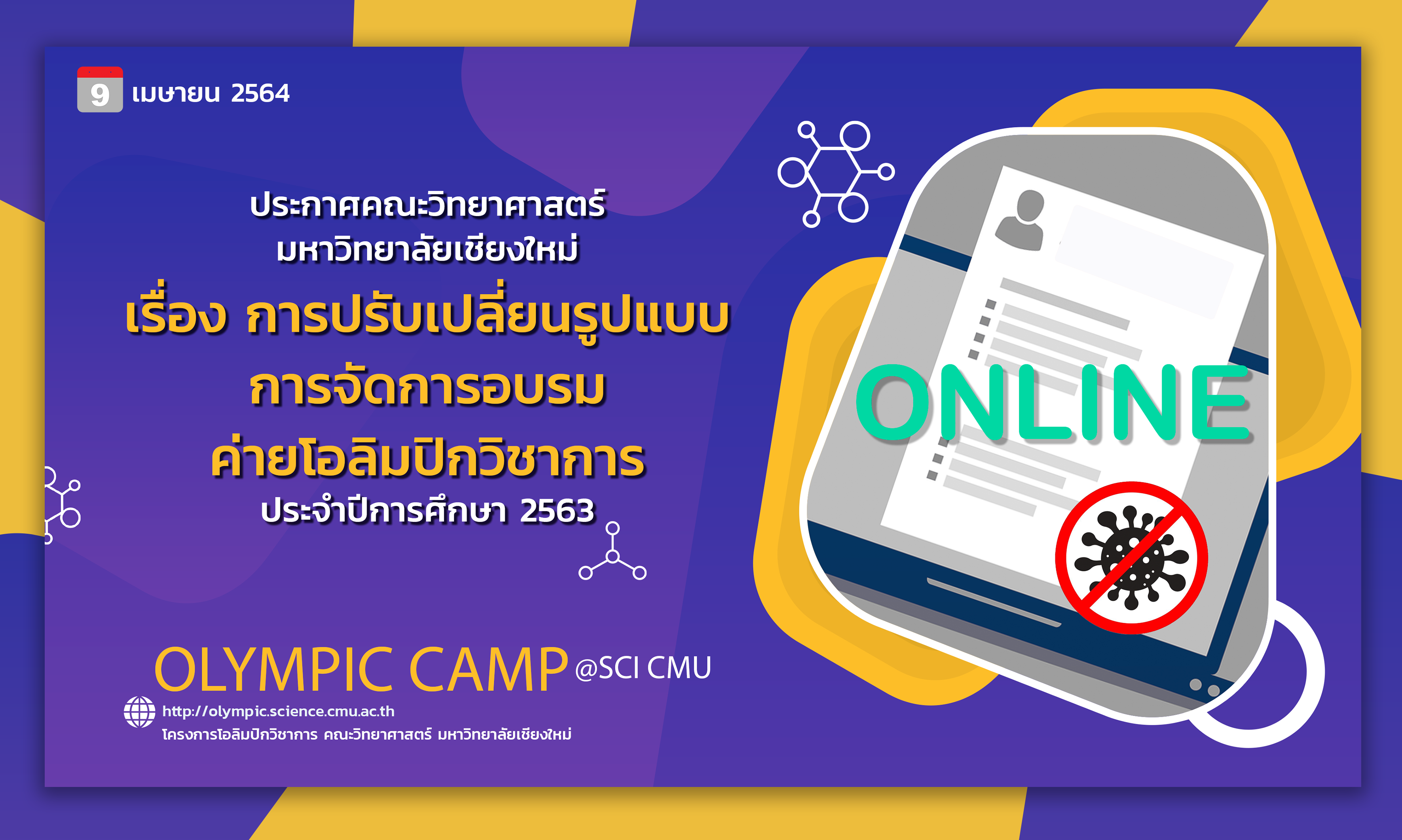 ประกาศ เรื่อง การปรับเปลี่ยนรูปแบบการจัดการอบรมค่ายโอลิมปิกวิชาการ ประจำปีการศึกษา 2563