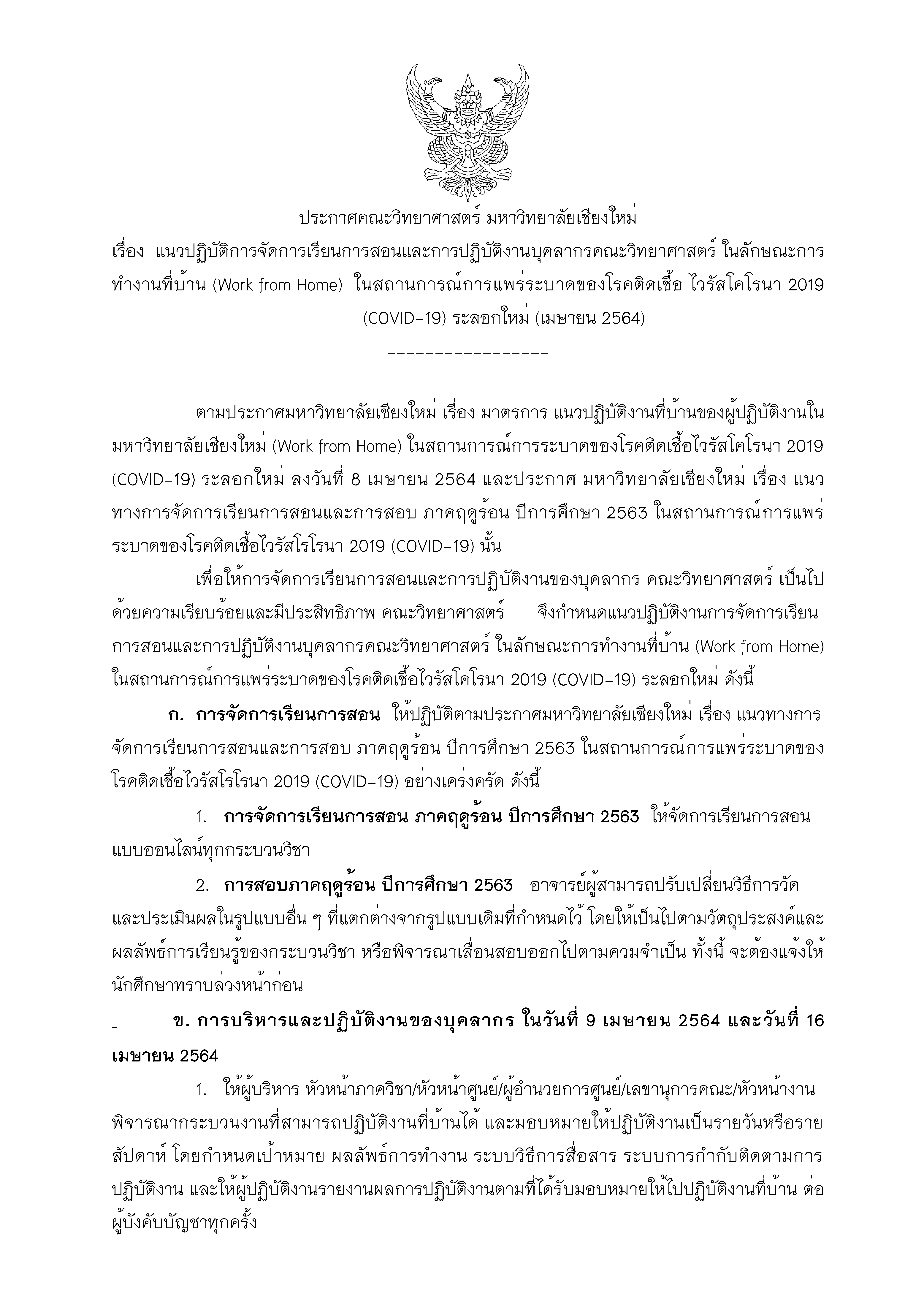 ประกาศคณะวิทยาศาสตร์ เรื่อง แนวปฏิบัติการ Work from Home ในสถานการณ์ COVID-19 ระลอกใหม่ (เมษายน 2564)