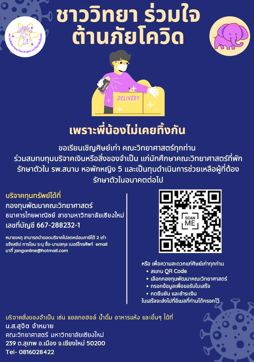 ศิษย์เก่าคณะวิทยาศาสตร์มอบเงินและเจลแอลกอฮอล์เพื่อบรรเทาสถานการณ์โควิด-19 แก่นักศึกษาคณะวิทยาศาสตร์