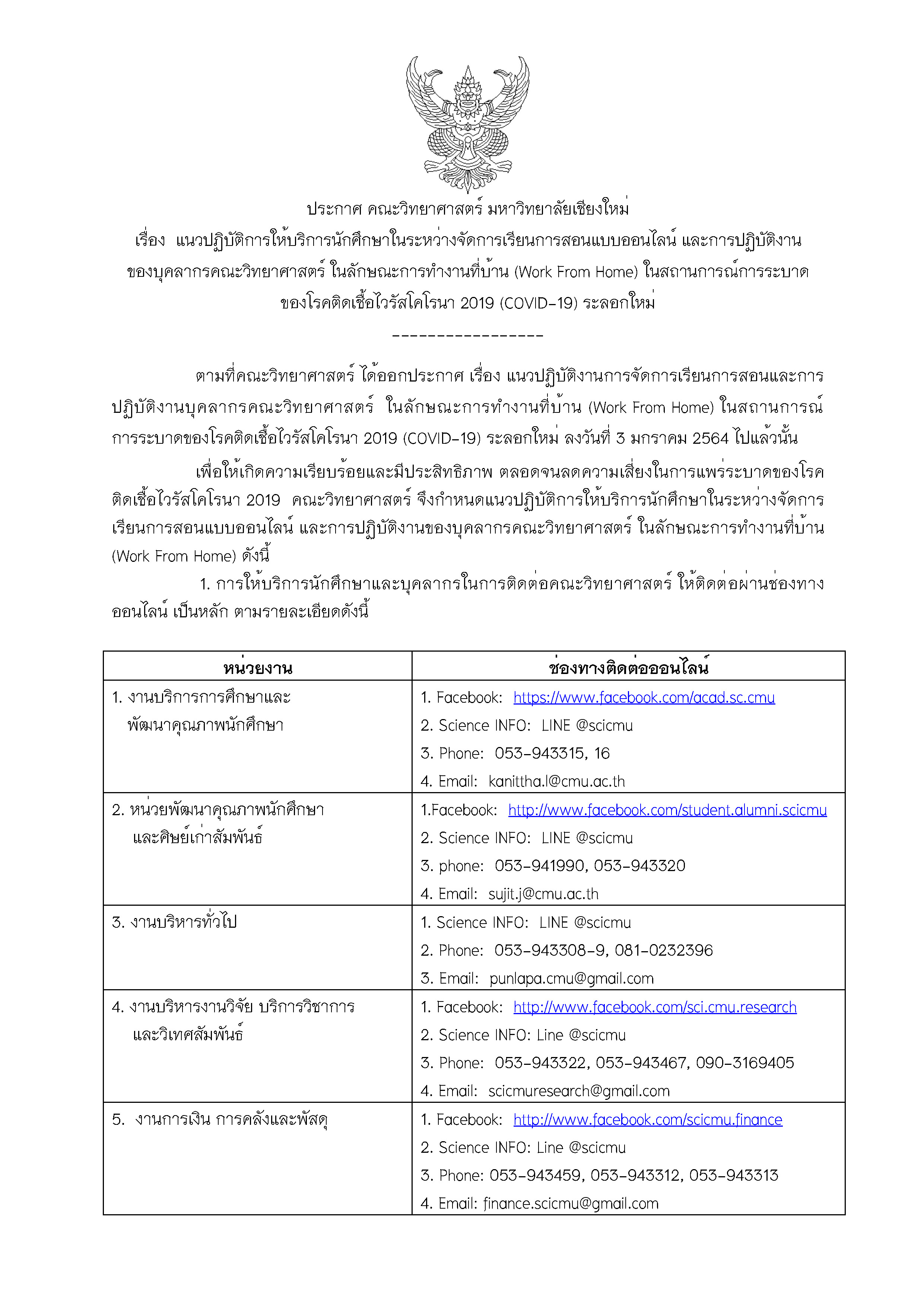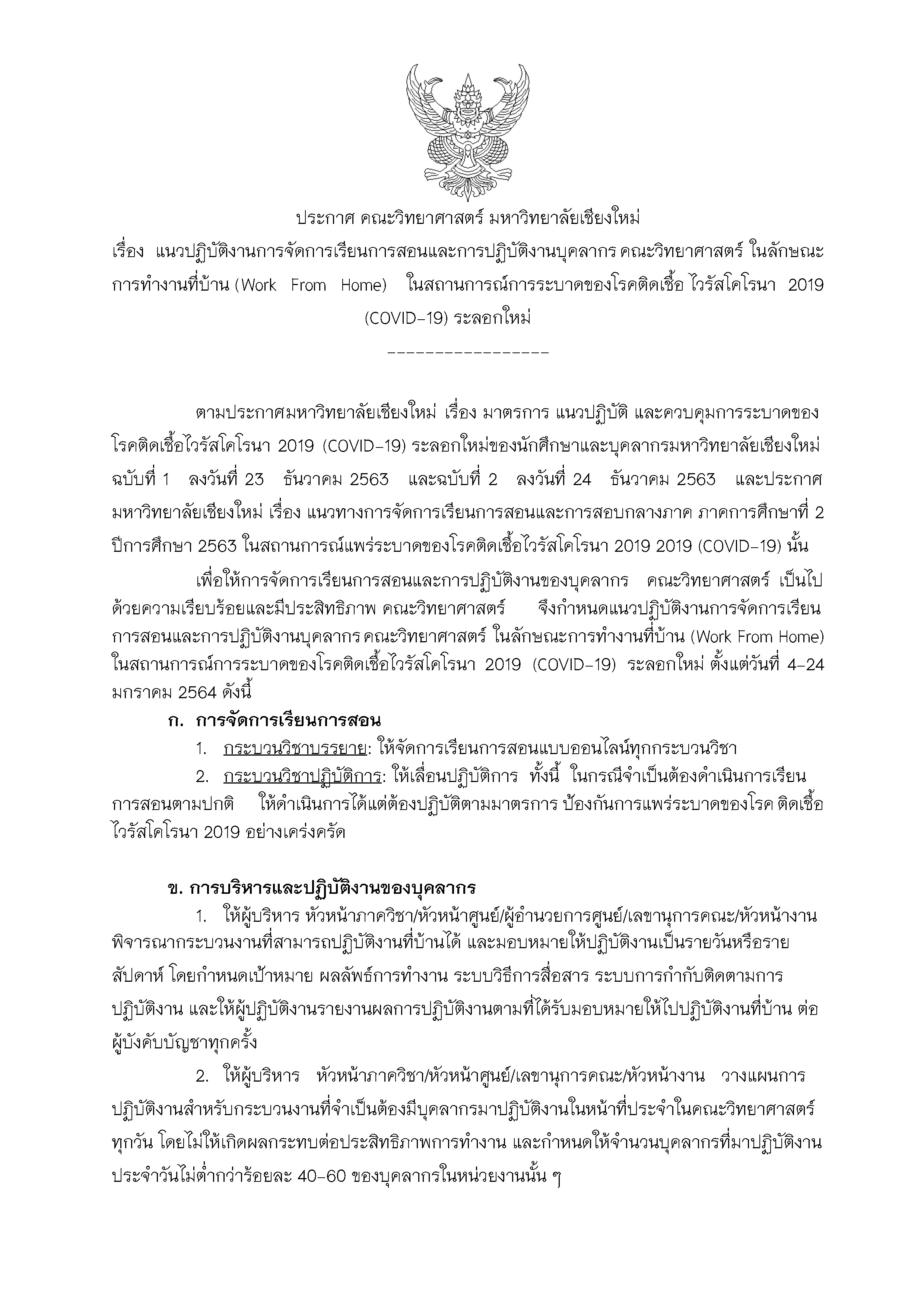 ประกาศแนวปฏิบัติ Work From Home ของบุคลากรคณะวิทยาศาสตร์ (3 มกราคม 2564)