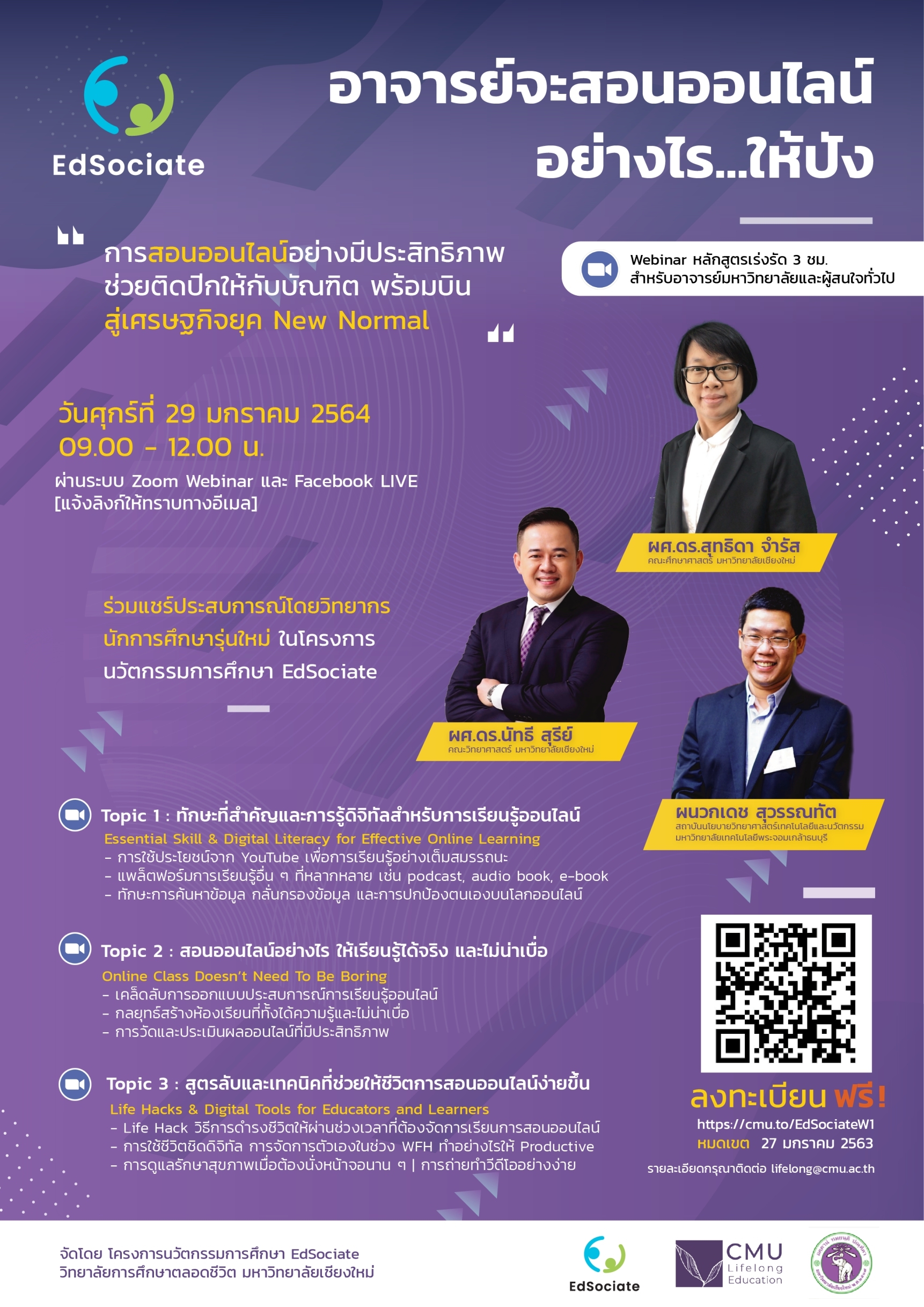 ขอเชิญคณาจารย์เข้าร่วม FREE Webinar เพื่อแลกเปลี่ยนเรียนรู้ อาจารย์จะสอนออนไลน์อย่างไร...ให้ปัง