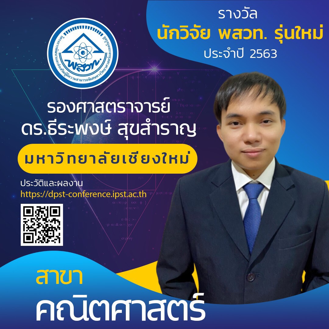 อาจารย์ประจำภาควิชาคณิตศาสตร์ที่ได้รับคัดเลือกให้รับรางวัลนักวิจัย พสวท. รุ่นใหม่ ประจำปี 2563