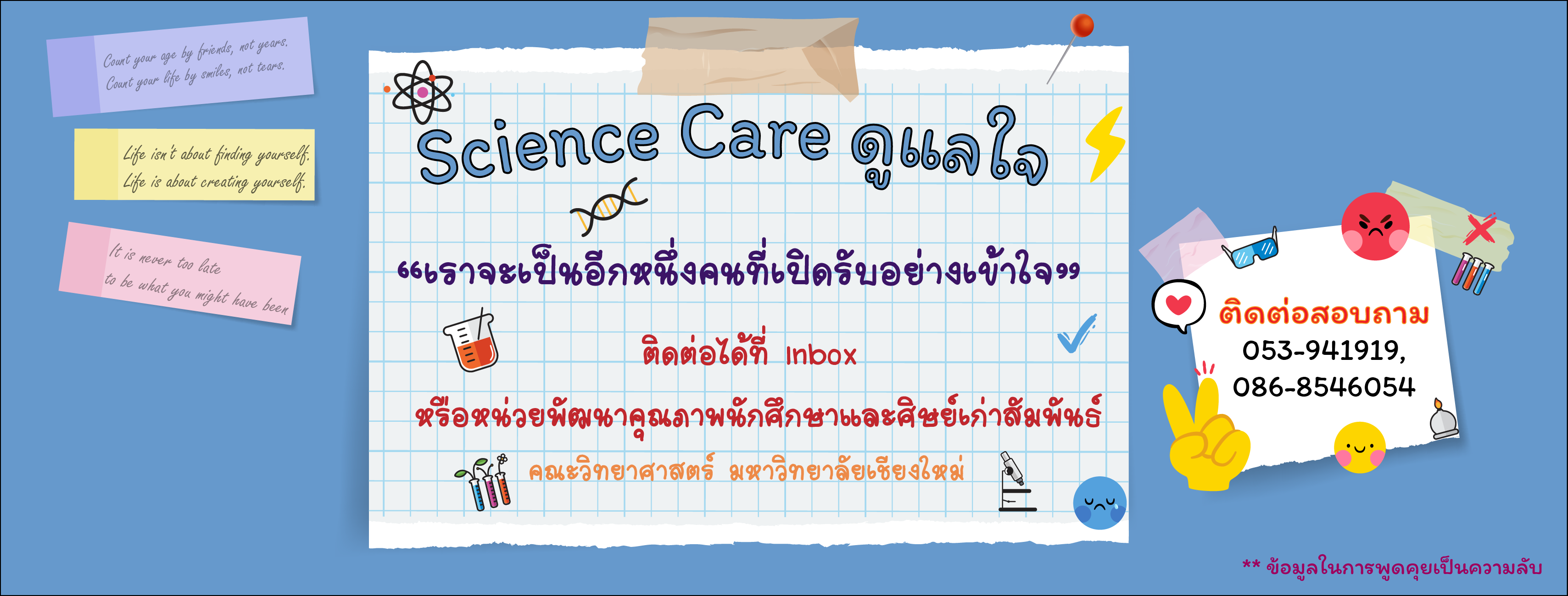 Science Care ดูแลใจ บริการให้คำปรึกษาทุกเรื่องราวไม่สบายใจ โดยนักจิตวิทยาประจำคณะวิทยาศาสตร์