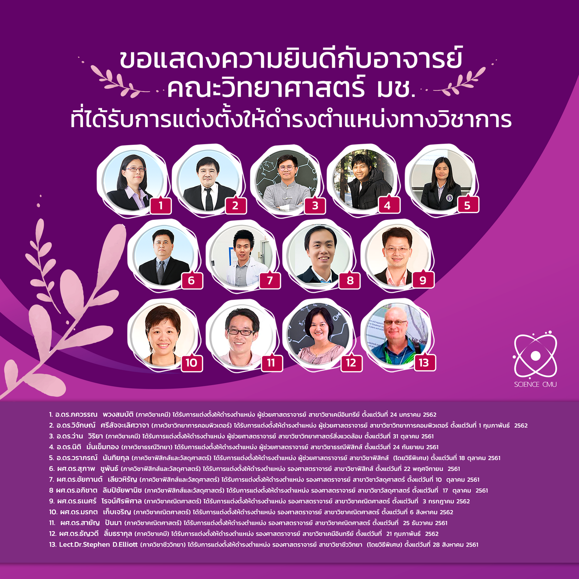 ขอแสดงความยินดีกับอาจารย์ คณะวิทยาศาสตร์ มช. ที่ได้รับการแต่งตั้งให้ดำรงตำแหน่งทางวิชาการ