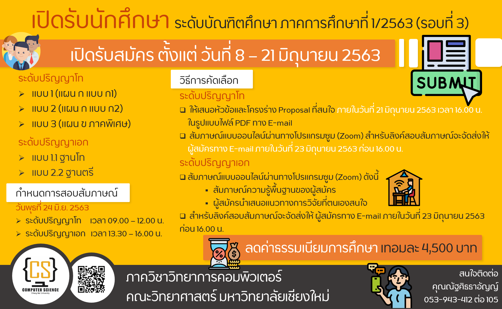 ภาควิชาวิทยาการคอมพิวเตอร์ เปิดรับสมัครนักศึกษาระดับบัณฑิตศึกษา ภาคการศึกษาที่ 1/2563 (รอบที่ 3)