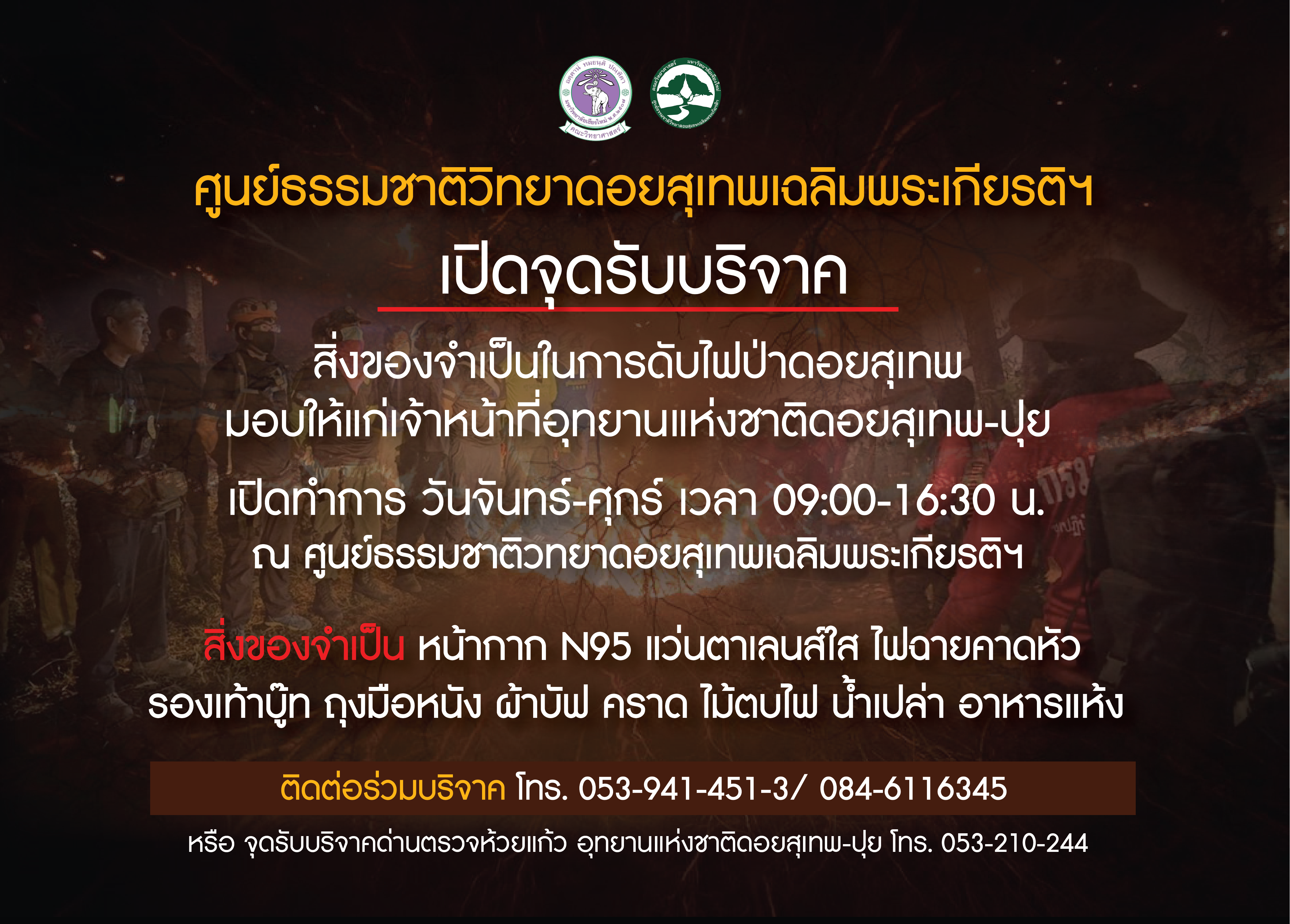 เปิดจุดรับบริจาคสิ่งของจำเป็นในการดับไฟป่าดอยสุเทพ