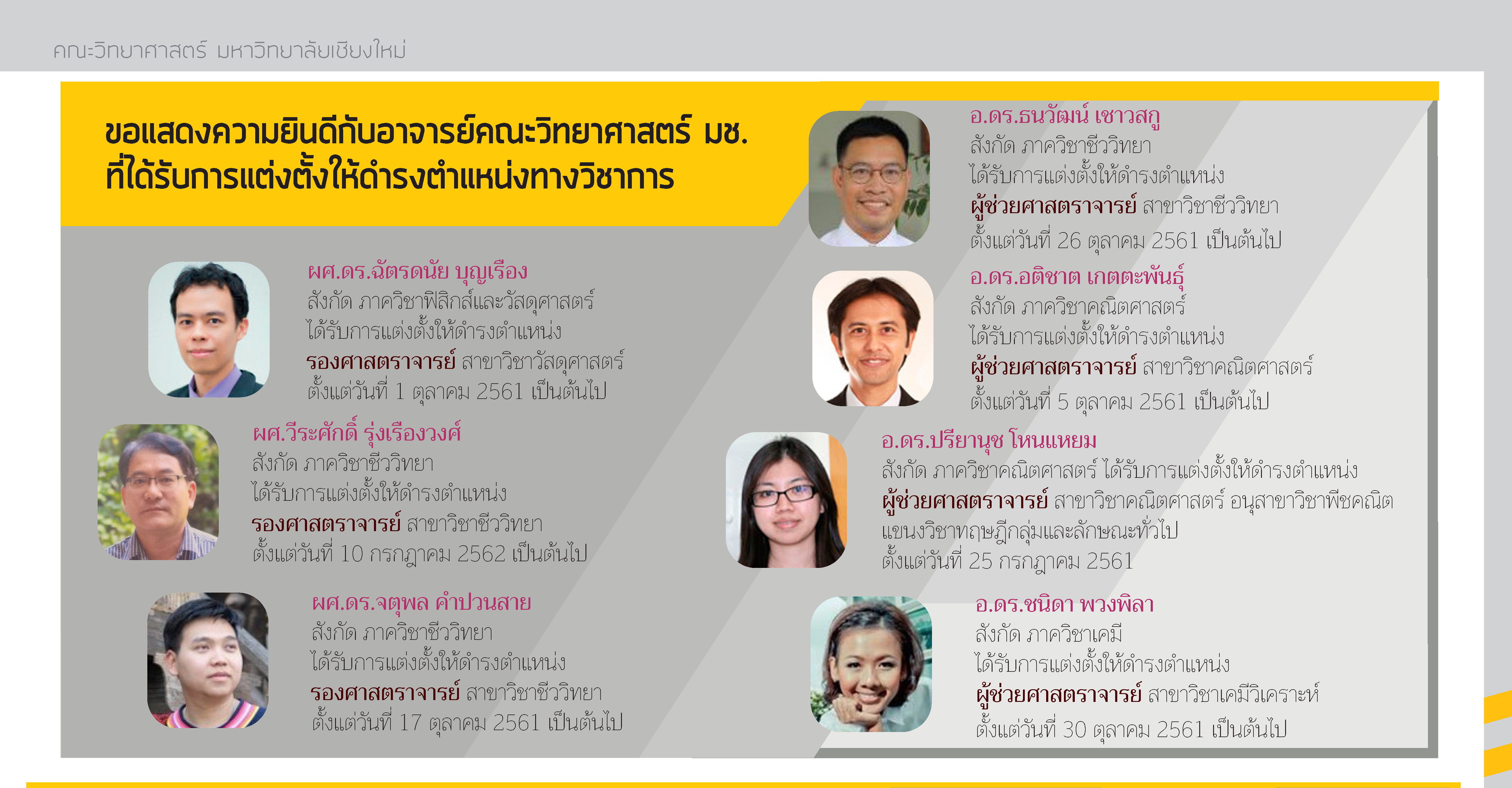 ขอแสดงความยินดีกับอาจารย์ที่ได้รับการแต่งตั้งให้ดำรงตำแหน่งทางวิชาการ