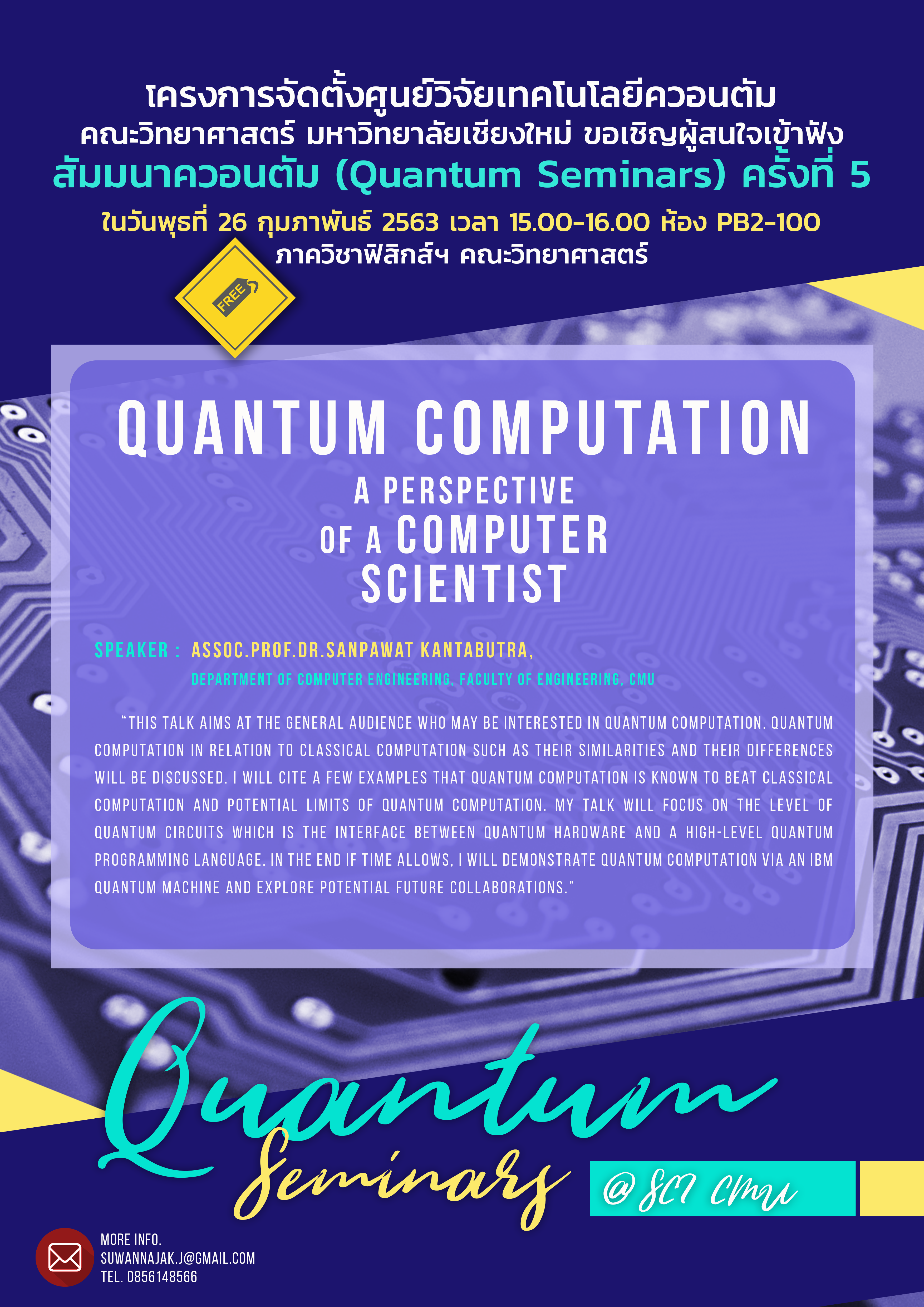 ขอเชิญผู้สนใจเข้าฟังสัมมนาควอนตัม Quantum Computation A perspective of a computer scientist