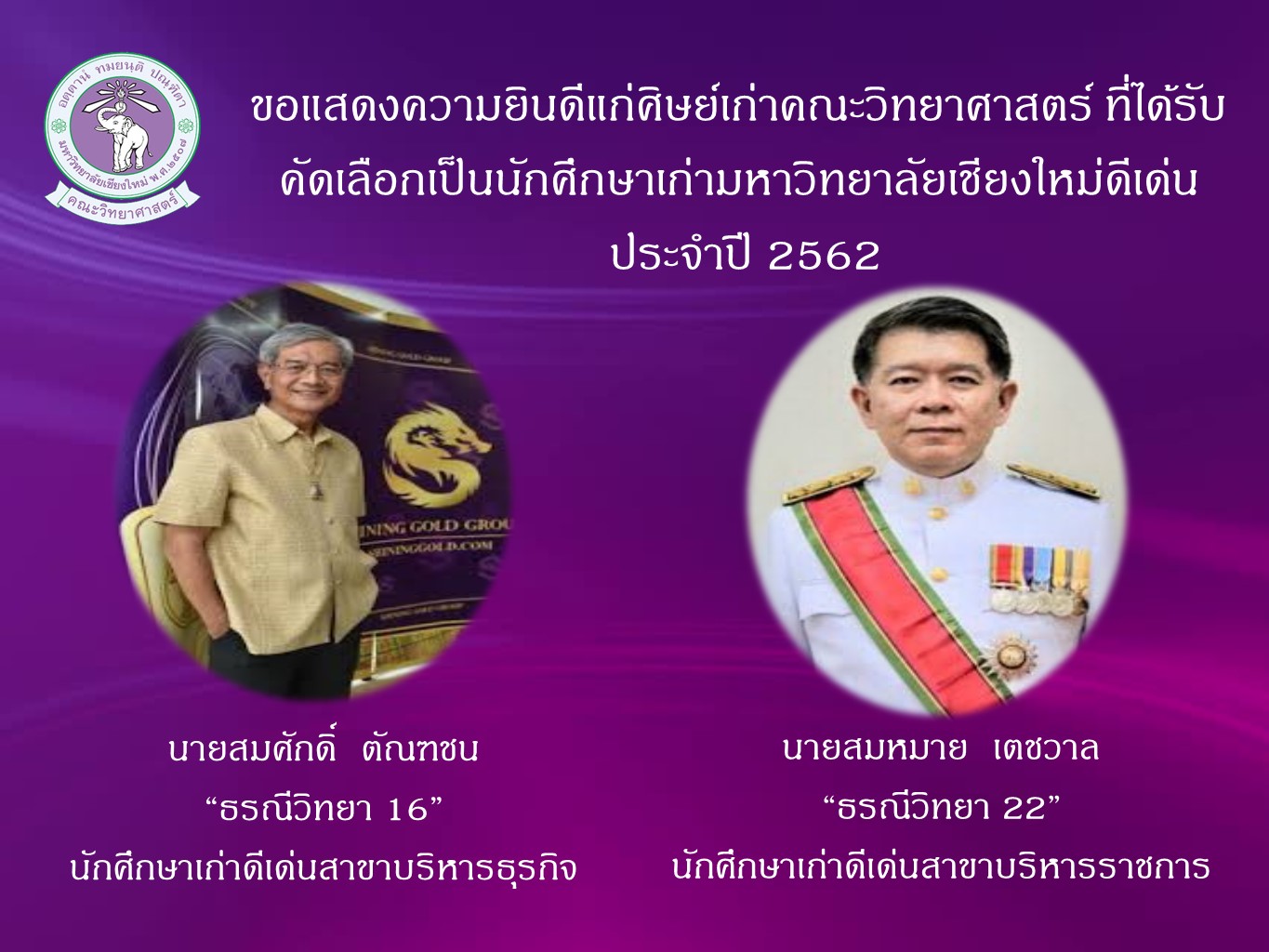ขอแสดงความยินดีกับศิษย์เก่าคณะวิทยาศาสตร์ที่ได้รับคัดเลือกเป็นนักศึกษาเก่ามหาวิทยาลัยเชียงใหม่ดีเด่น ประจำปี พ.ศ. 2562