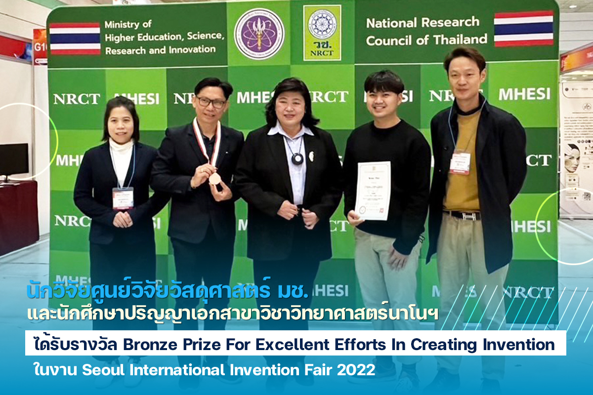 นักวิจัยศูนย์วิจัยวัสดุศาสตร์ มช. และนักศึกษาปริญญาเอก คว้ารางวัล Bronze Prize For Excellent Efforts In Creating Invention ณ เกาหลี