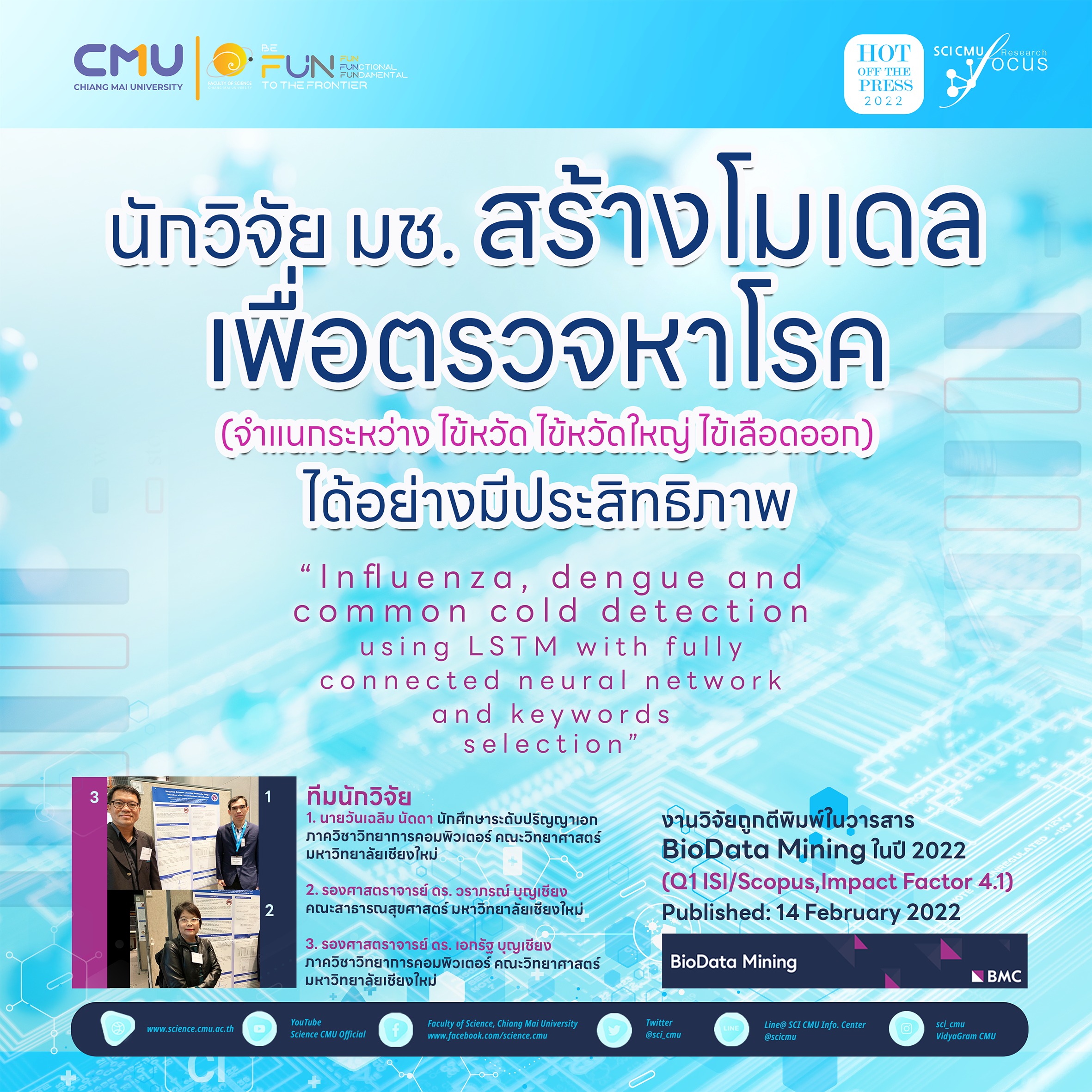 นักวิจัย มช. สร้างโมเดลเพื่อตรวจหาโรค (จำแนกระหว่าง ไข้หวัด ไข้หวัดใหญ่ ไข้เลือดออก) ได้อย่างมีประสิทธิภาพ