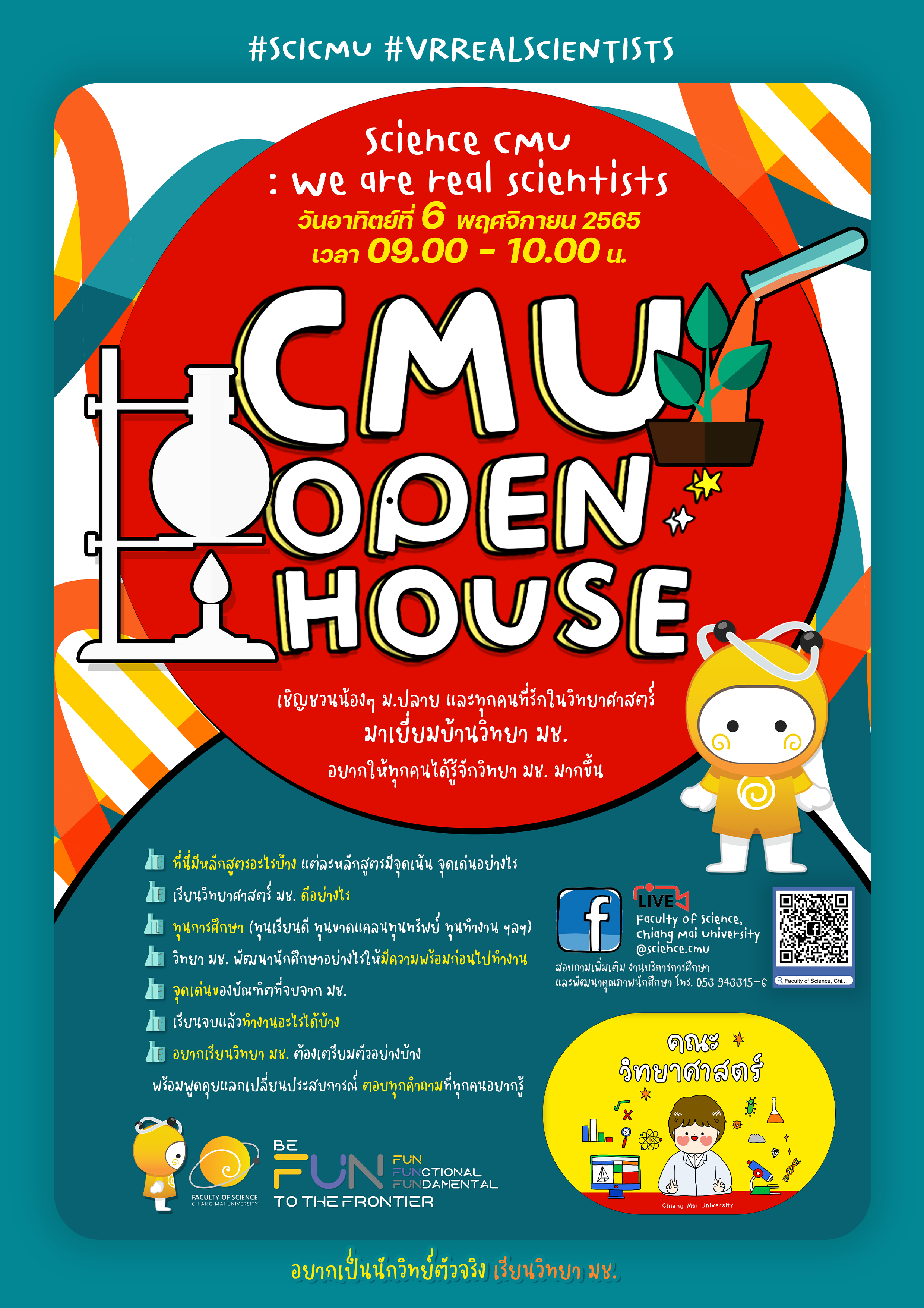 6 พฤศจิกายนนี้ ขอเชิญชวนน้อง ๆ ม.ปลาย และทุกคนที่รักในวิทยาศาสตร์ มาเยี่ยมบ้านวิทยา มช. ในกิจกรรม CMU Open House Online 2022