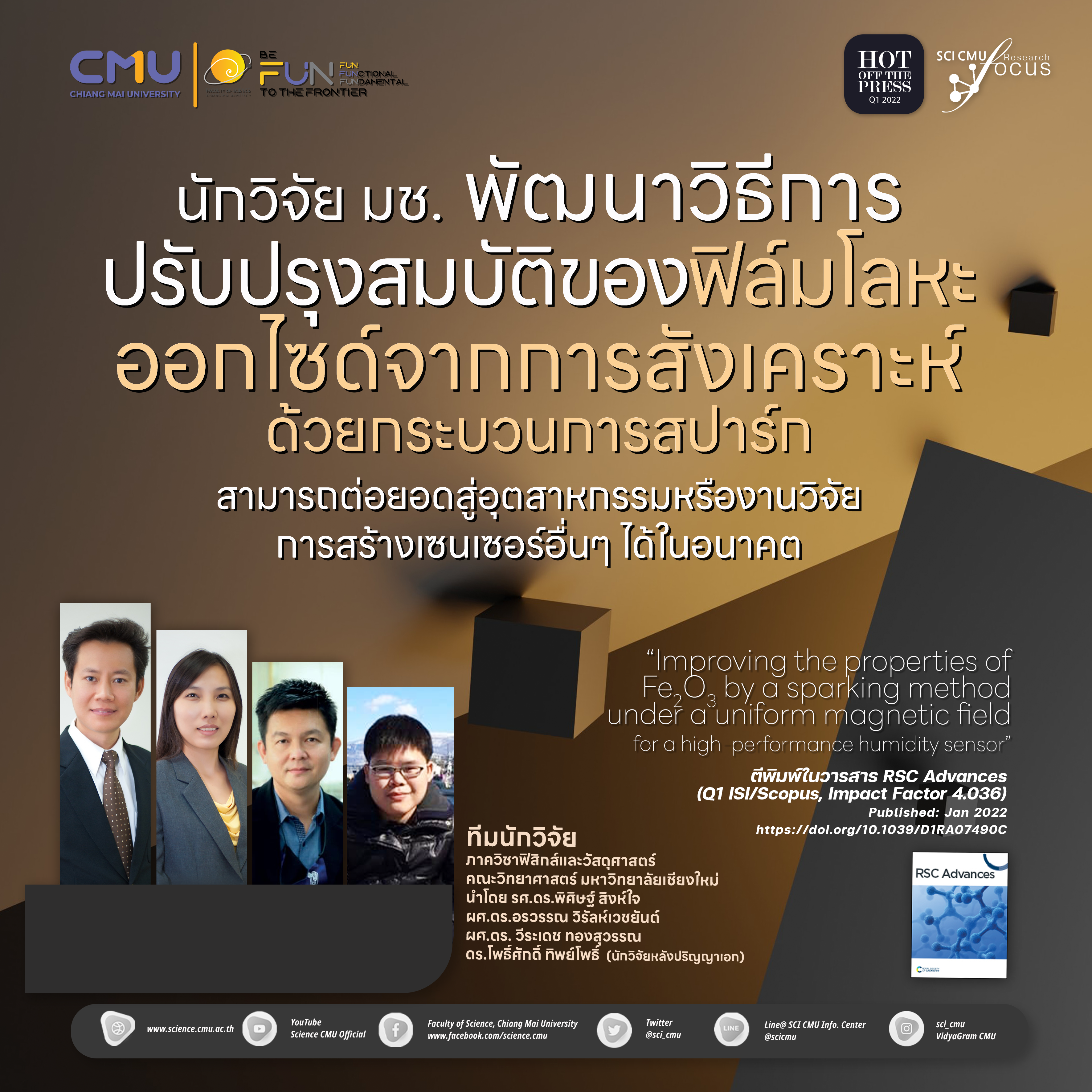 นักวิจัย มช. พัฒนาวิธีการปรับปรุงสมบัติของฟิล์มโลหะออกไซด์จากการสังเคราะห์ด้วยกระบวนการสปาร์ก สามารถต่อยอดสู่การสร้างเซนเซอร์อื่นๆ ในอนาคต