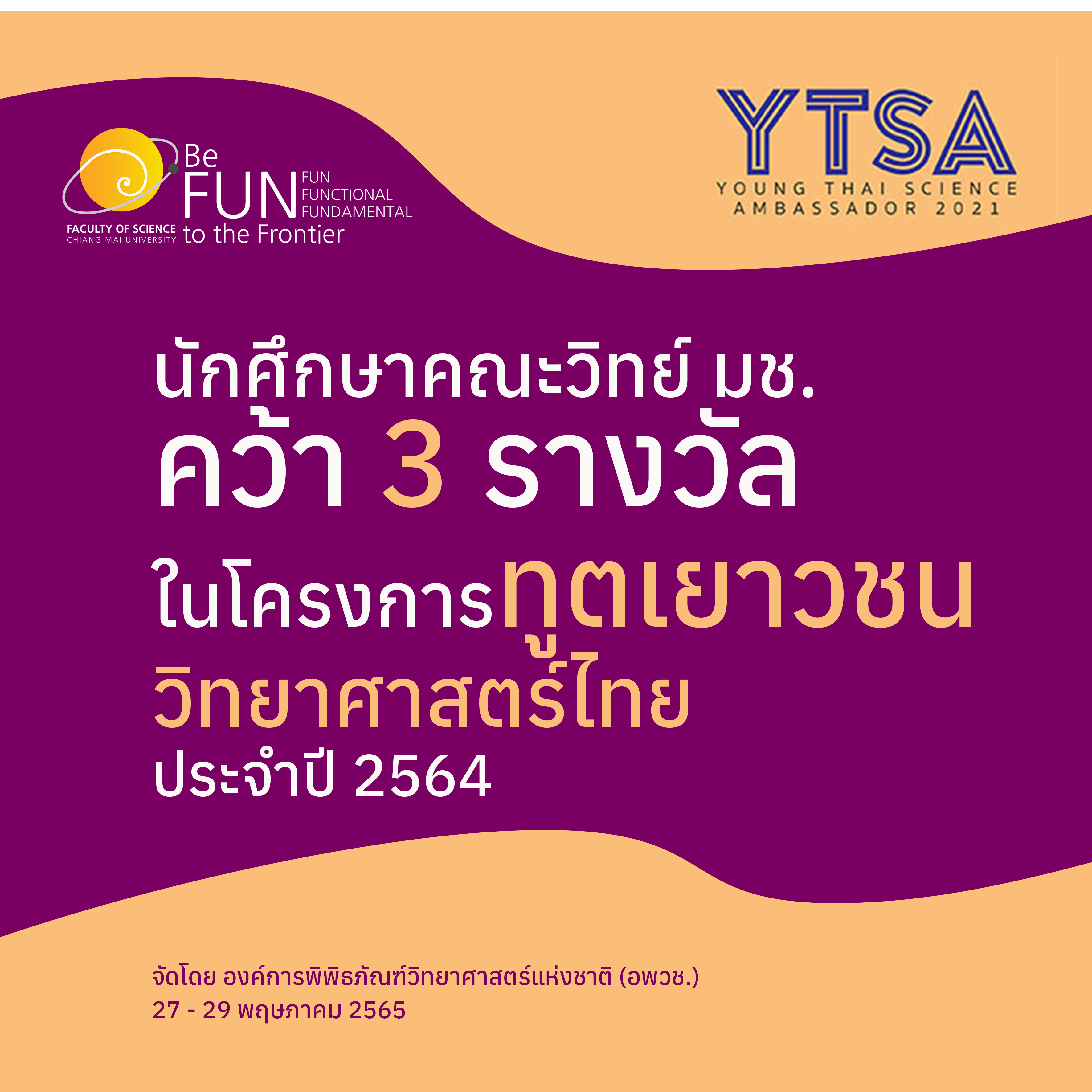 นักศึกษาคณะวิทย์ มช. คว้า 3 รางวัล ในโครงการทูตเยาวชนวิทยาศาสตร์ไทย ประจำปี 2564