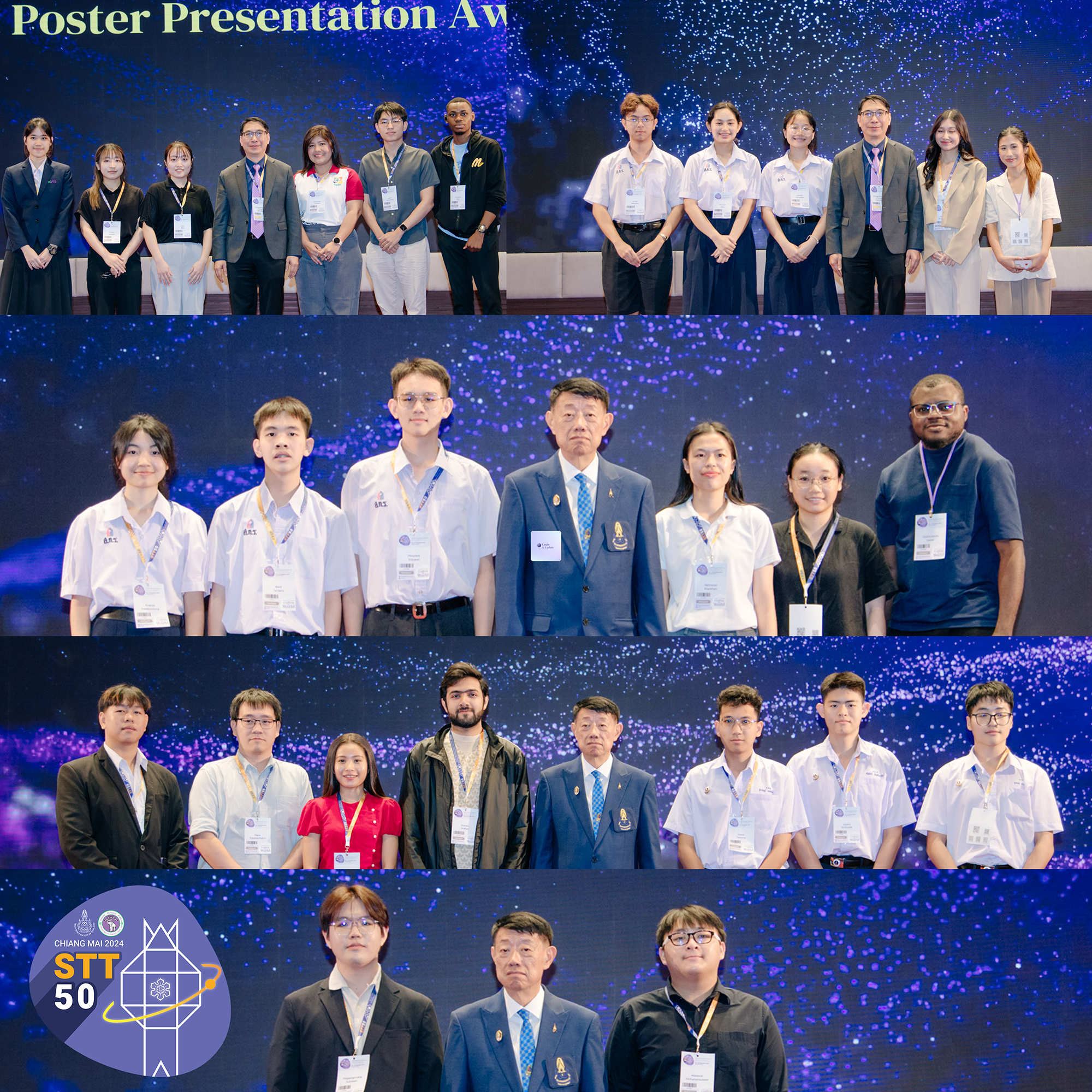 คณะวิทยาศาสตร์ขอแสดงความยินดีกับนักศึกษาที่ได้รับรางวัลการนำเสนอผลงานทางวิชาการ ในการประชุมวิชาการนานาชาติด้านวิทยาศาสตร์ เทคโนโลยี และนวัตกรรมทางเทคโนโลยี ครั้งที่ 50 (The 50th International Congress on Science, Technology and Technology-based Innovation (STT50)) ระหว่างวันที่ 25-27 พฤศจิกายน 2567 ณ โรงแรมดิเอ็มเพรส จังหวัดเชียงใหม่ ดังนี้