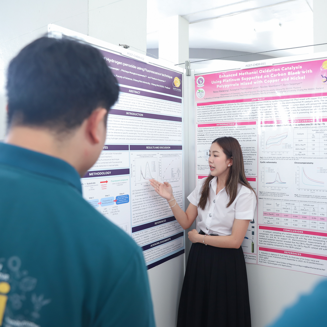 จากนั้นในช่วงบ่าย นักศึกษาได้นำเสนอผลงานแบบโปสเตอร์และสหกิจศึกษา ณ บริเวณโถงกิจกรรม ชั้น 1 อาคาร 40 ปี คณะวิทยาศาสตร์