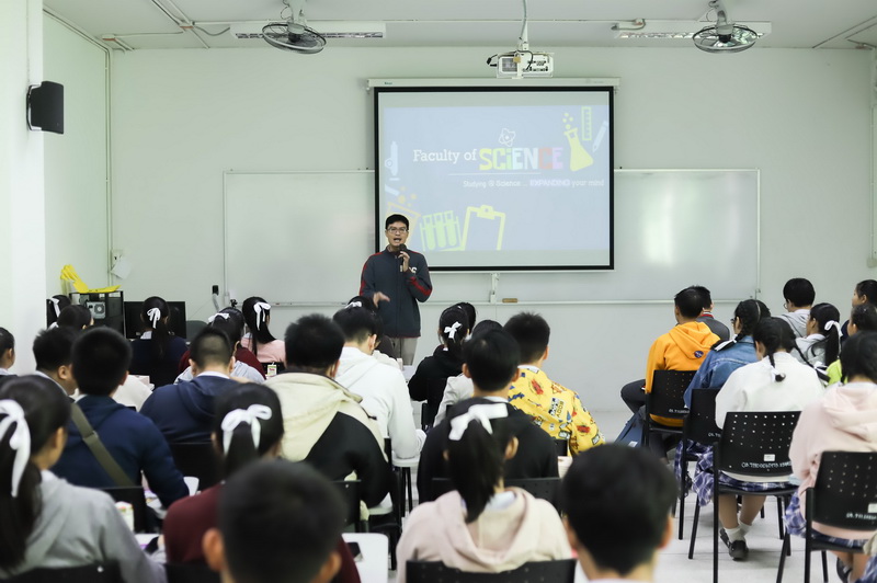 ผู้ช่วยศาสตราจารย์ ดร.จิรัฏฐ์ แสนทน รองคณบดีฝ่ายวิชาการ พร้อมด้วยอาจารย์คณะวิทยาศาสตร์ บรรยายแนะนำภาพรวมของคณะวิทยาศาสตร์ ให้แก่นักเรียนระดับมัธยมศึกษาตอนปลาย จากโรงเรียนสารสาสน์วิเทศเชียงใหม่ ที่มาเยี่ยมชมและศึกษาแนวทางการเรียนการสอนของคณะฯ เพื่อให้นักเรียนมีข้อมูลประกอบการตัดสินใจศึกษาต่อ รวมทั้งได้มีโอกาสเยี่ยมชมห้องปฏิบัติการและสัมผัสบรรยากาศการเรียนในสถานที่จริง เมื่อวันที่ 17 ธันวาคม 2562 ณ อาคาร 45 ปี คณะวิทยาศาสตร์ และภาควิชาต่างๆ