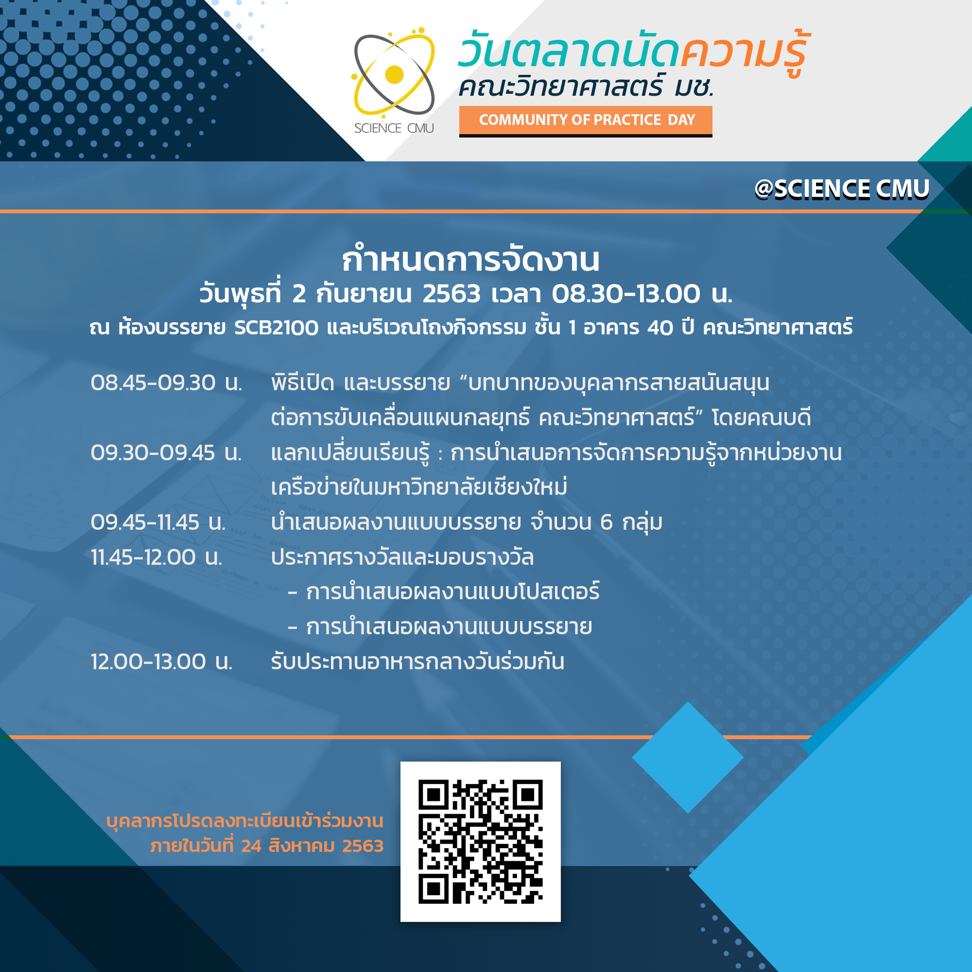 2 กันยายนนี้ ขอเชิญบุคลากรคณะวิทยาศาสตร์ มช. ร่วมกิจกรรมวันตลาดนัดความรู้ ครั้งที่ 2