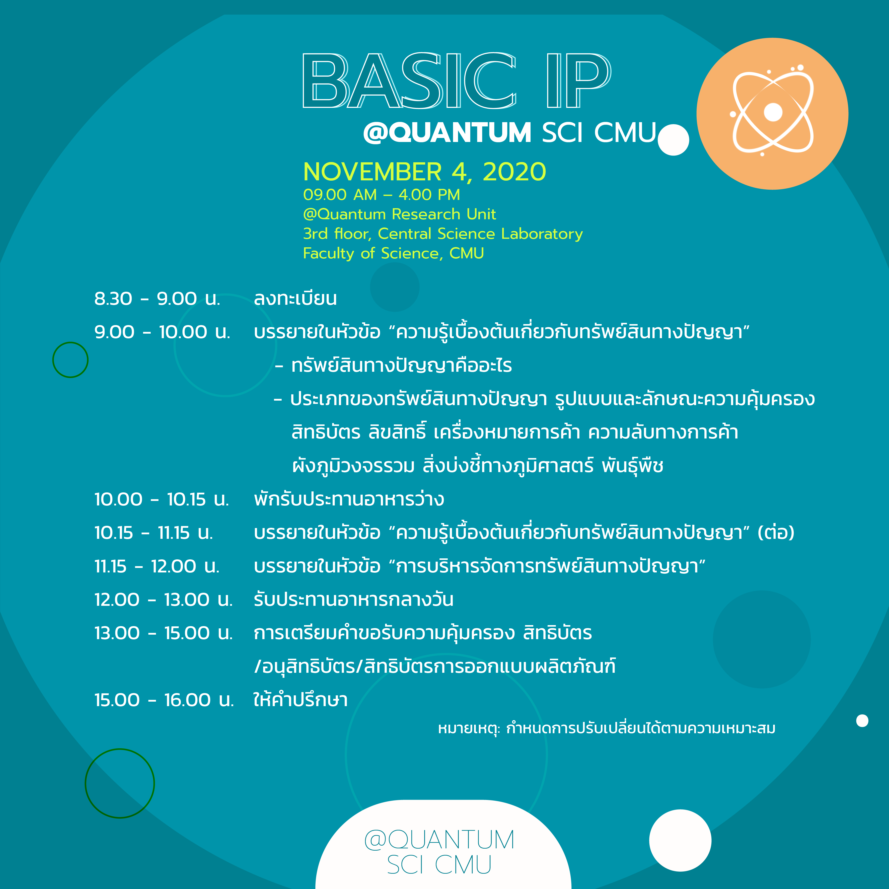 ขอเชิญนักศึกษาและบุคลากร คณะวิทยาศาสตร์ มช. เข้าร่วมอบรมความรู้เบื้องต้น ทรัพย์สินทางปัญญา