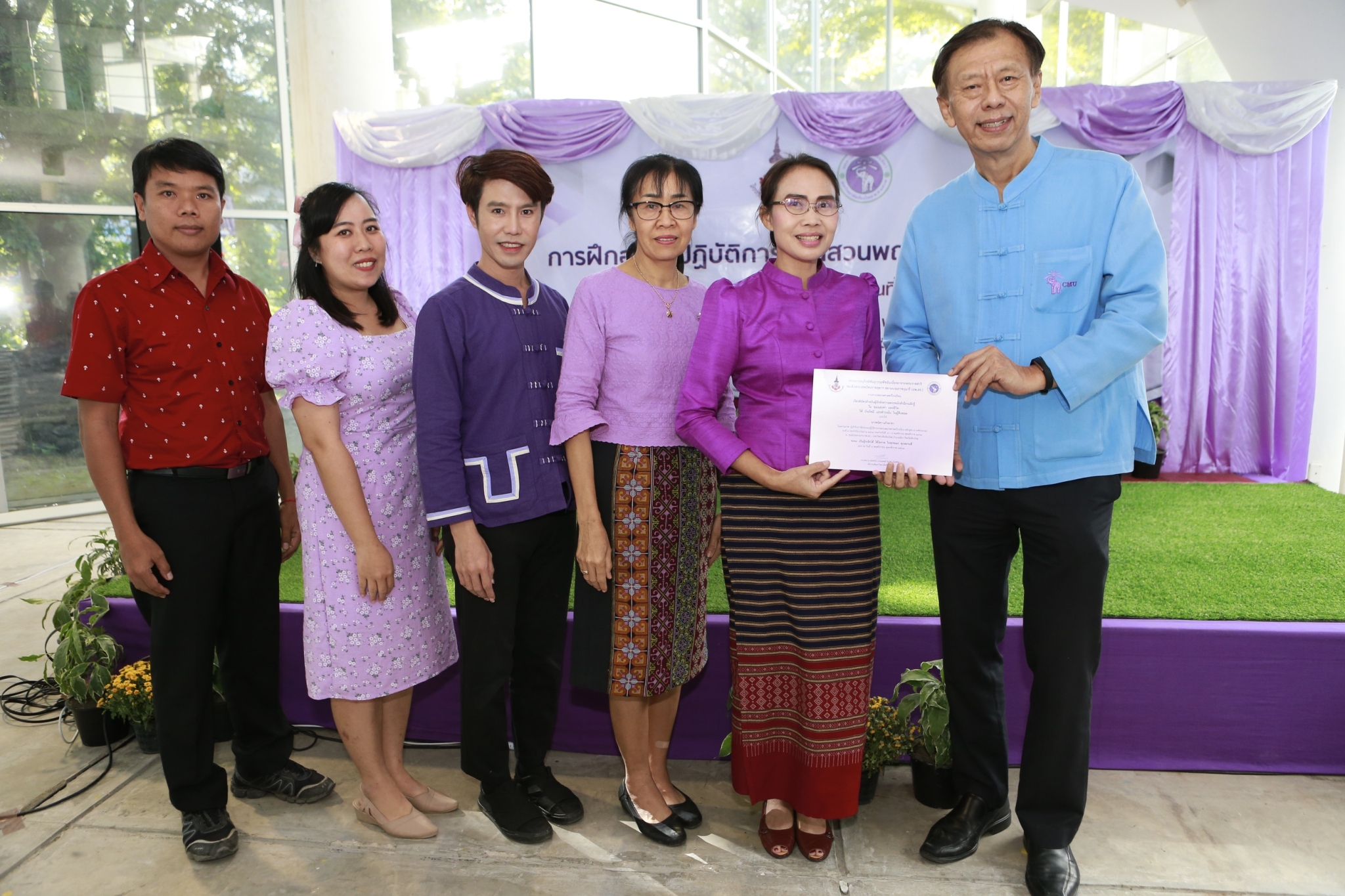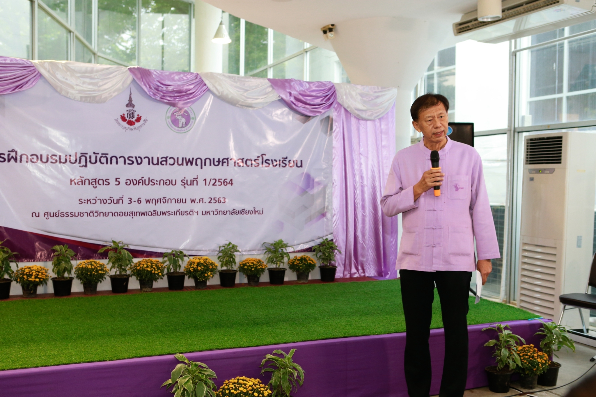 รองศาสตราจารย์ ดร. สัมพันธ์ สิงหราชวราพันธ์ รองอธิการบดีมหาวิทยาลัยเชียงใหม่ ให้เกียรติเป็นประธานในพิธีเปิดและปิด พร้อมมอบประกาศนียบัตรแก่ผู้เข้าร่วมอบรมทุกคน ในการจัดฝึกอบรมปฏิบัติการงานสวนพฤกษศาสตร์โรงเรียน หลักสูตร 5 องค์ประกอบ รุ่นที่ 1/2564 โดยมีผู้เข้าร่วมอบรมเป็นบุคลากรทางการศึกษาจากโรงเรียนและสถานศึกษาต่างๆ ทั้งสิ้น 103 คน เพื่อเรียนรู้และเข้าใจในการดำเนินงานสนองพระราชดำริ โครงการอนุรักษ์พันธุกรรมพืชอันเนื่องมาจากพระราชดำริ สมเด็จพระเทพรัตนราชสุดาฯ สยามบรมราชกุมารี (อพ.สธ.) ในงานสวนพฤกษศาสตร์โรงเรียน สำหรับปลูกฝังและสร้างจิตสำนึกให้กับเยาวชนไทยในการอนุรักษ์ทรัพยากรอย่างยั่งยืนต่อไป งานครั้งนี้ได้รับเกียรติจากคุณชนันต์ติณณ์ เทียนทอง เจ้าหน้าที่งานในพระองค์ ระดับ 6 และ ดร.ปิยรัษฎ์ ปริญญาพงษ์ เจริญทรัพย์ รองหัวหน้าสำนักงาน อพ.สธ. เป็นวิทยากรผู้ทรงคุณวุฒิ ซึ่งจัดโดยศูนย์แม่ข่ายประสานงาน อพ.สธ. มหาวิทยาลัยเชียงใหม่ ระหว่างวันที่ 3-6 พฤศจิกายน 2563 ณ ศูนย์ธรรมชาติวิทยาดอยสุเทพเฉลิมพระเกียรติฯ มหาวิทยาลัยเชียงใหม่