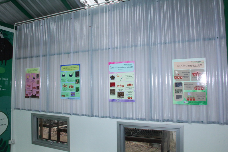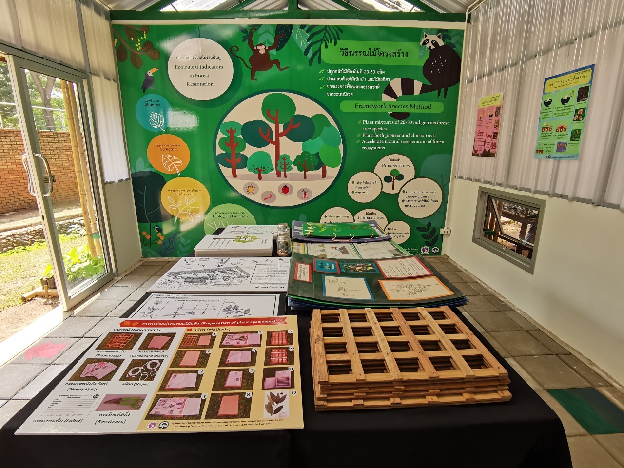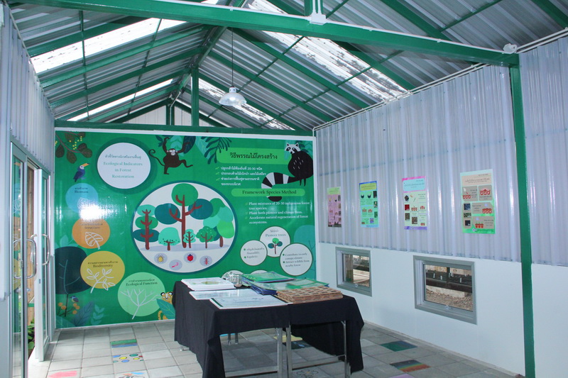 1. ห้องนิทรรศการ จัดแสดงข้อมูลการฟื้นฟูป่าโดยวิธีพรรณไม้โครงสร้าง องค์ประกอบของเมล็ด ตัวอย่างพรรณไม้แห้ง และตัวอย่างอุปกรณ์เรือนเพาะชำ