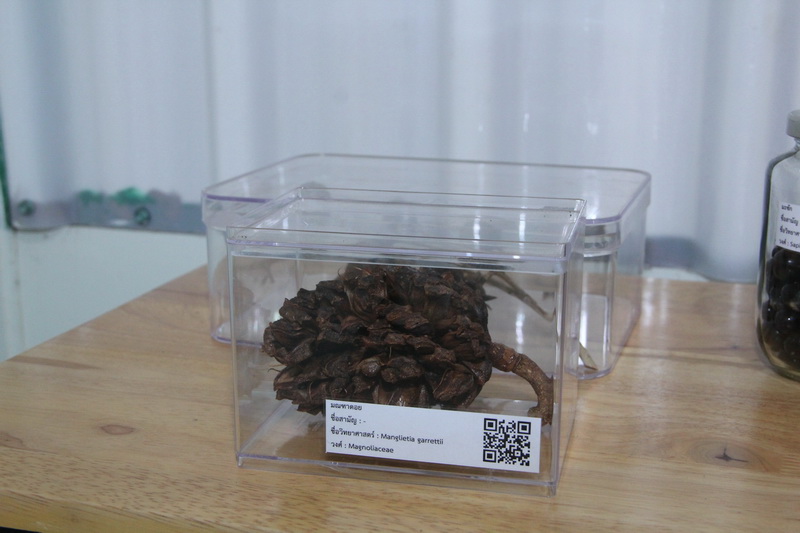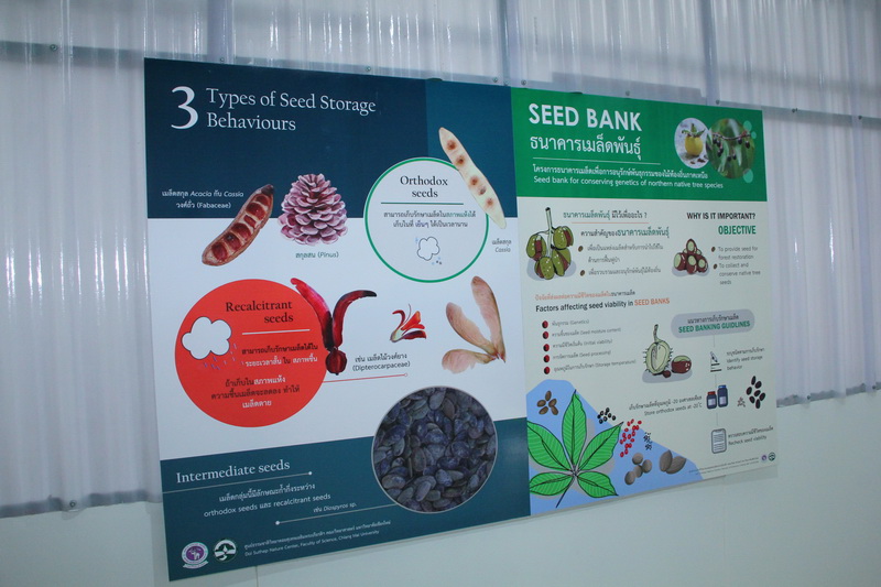 2. ห้องเก็บตัวอย่างเมล็ด จัดแสดงข้อมูลโครงการธนาคารเมล็ดเพื่อการอนุรักษ์พันธุกรรมของไม้ท้องถิ่น ประเภทของเมล็ด ตัวอย่างเมล็ดพันธุ์ไม้ท้องถิ่น และตัวอย่างพรรณไม้แห้ง