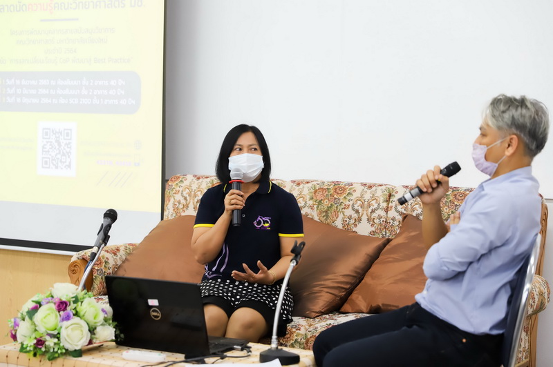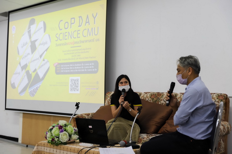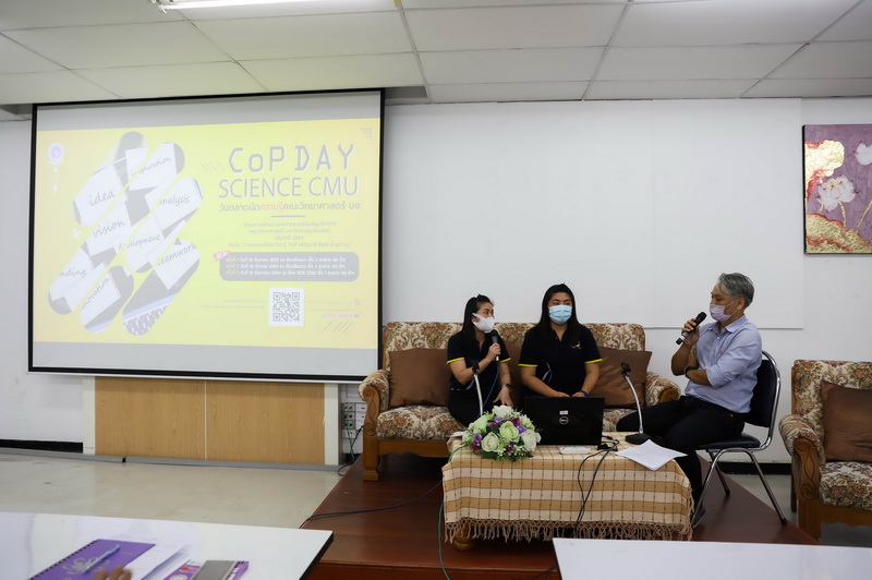ภายในงานมีการแลกเปลี่ยนเรียนรู้ (Knowledge Sharing) ร่วมกับตัวแทนกลุ่มชุมชนนักปฏิบัติ CoP ที่ได้รับรางวัลประจำปี 2563 ได้แก่ กลุ่ม Living Library โดยนางสาวอุทุมพร มณีวรรณ์ กลุ่ม Sci CMU e-Document โดยนางเบญจวรรณ ใจสักเสริญ และนางวลัยพร เรือนมูล และกลุ่มพัฒนาระบบบริหารกองทุนพัฒนาคณะวิทยาศาสตร์ โดยนางอัมพร ทัพบุรี หลังจากนั้นมีการแบ่งกลุ่มระดมความคิดเห็นการจัดทำกลุ่ม CoP ประจำปี 2564 เพื่อค้นหาหัวข้อในการพัฒนากลุ่ม CoP แต่ละสายงาน