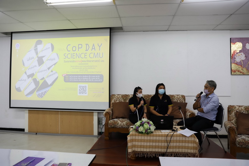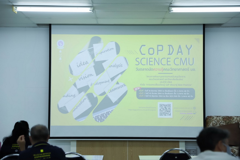 คณะวิทยาศาสตร์จัดงานวันตลาดนัดความรู้ CoP Day, Science CMU ปีที่ 3 ครั้งที่ 1 ในวันที่ 16 ธันวาคม 2563 ณ ห้องสัมมนา ชั้น 2 อาคาร 40 ปีฯ โดยได้รับเกียรติจาก ผศ.ดร.หทัยชนก เนียมทรัพย์ รองคณบดีฝ่ายบริหาร คณะวิทยาศาสตร์ และบรรยายให้ความรู้เกี่ยวกับการจัดการความรู้