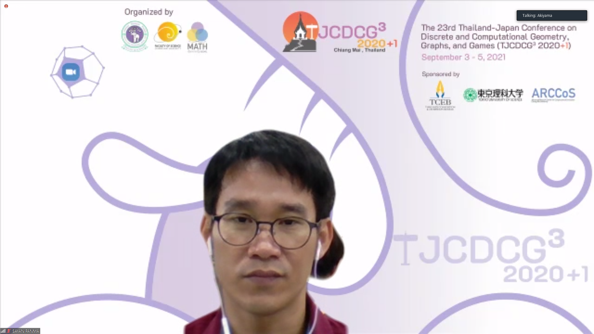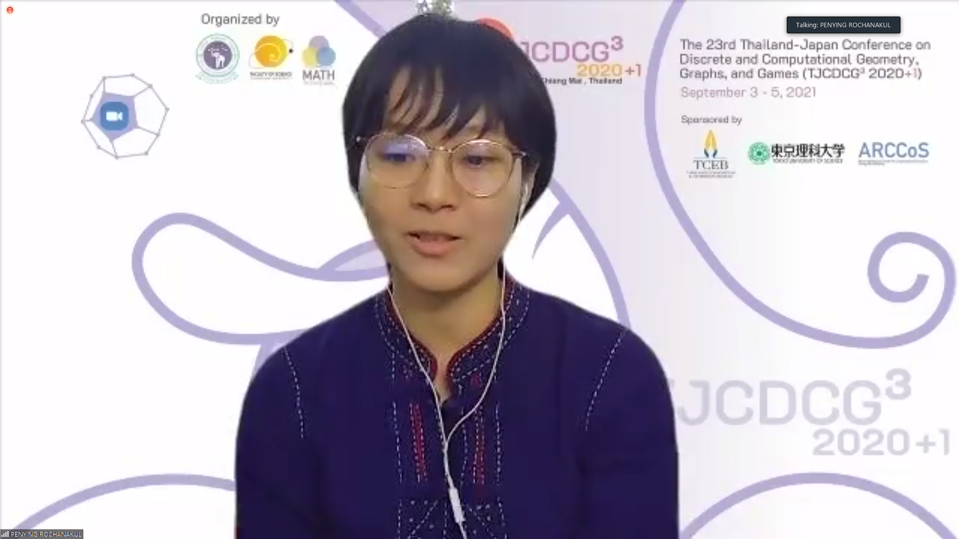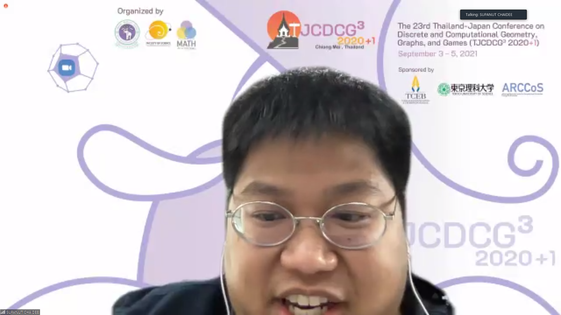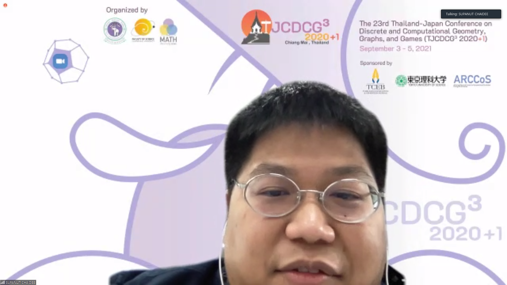 ภาควิชาคณิตศาสตร์ คณะวิทยาศาสตร์ มหาวิทยาลัยเชียงใหม่ ได้รับเกียรติให้เป็นเจ้าภาพจัดการประชุมนานาชาติ The 23rd Thailand-Japan Conference on Discrete and Computational Geometry, Graphs, and Games (TJCDCGGG2020+1) ผ่านระบบออนไลน์ ระหว่างวันที่ 3 - 5 กันยายน 2564 โดยได้รับเกียรติจาก รองศาสตราจารย์ ดร. เกศรินทร์ พิมรักษา รองคณบดีฝ่ายวิจัยและวิเทศสัมพันธ์ คณะวิทยาศาสตร์ เป็นประธานเปิดงาน ในวันที่ 3 กันยายน 2564
