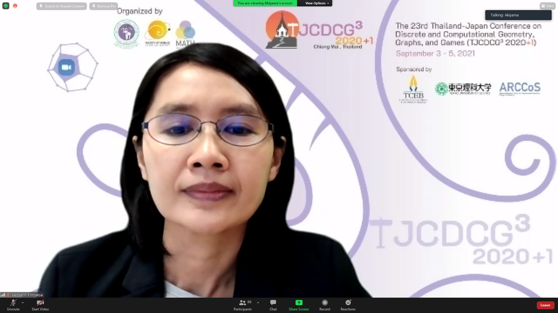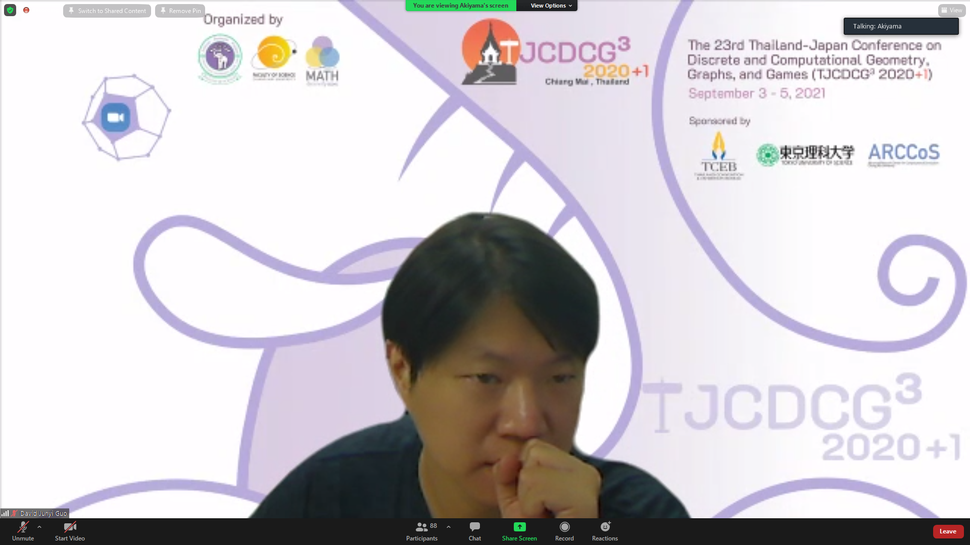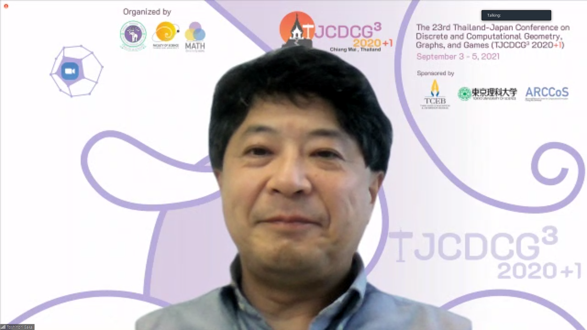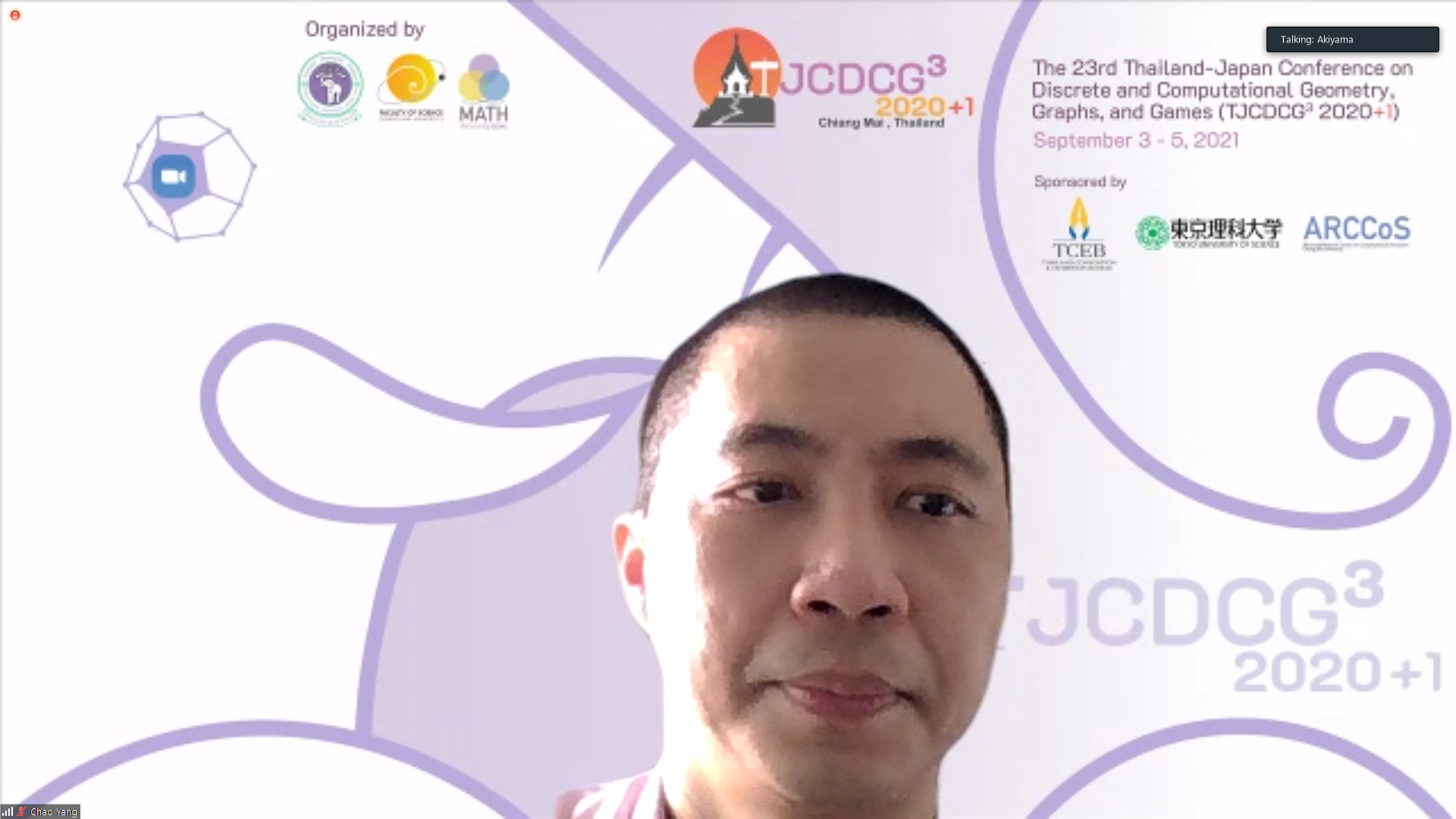 ภาควิชาคณิตศาสตร์ คณะวิทยาศาสตร์ มหาวิทยาลัยเชียงใหม่ ได้รับเกียรติให้เป็นเจ้าภาพจัดการประชุมนานาชาติ The 23rd Thailand-Japan Conference on Discrete and Computational Geometry, Graphs, and Games (TJCDCGGG2020+1) ผ่านระบบออนไลน์ ระหว่างวันที่ 3 - 5 กันยายน 2564 โดยได้รับเกียรติจาก รองศาสตราจารย์ ดร. เกศรินทร์ พิมรักษา รองคณบดีฝ่ายวิจัยและวิเทศสัมพันธ์ คณะวิทยาศาสตร์ เป็นประธานเปิดงาน ในวันที่ 3 กันยายน 2564