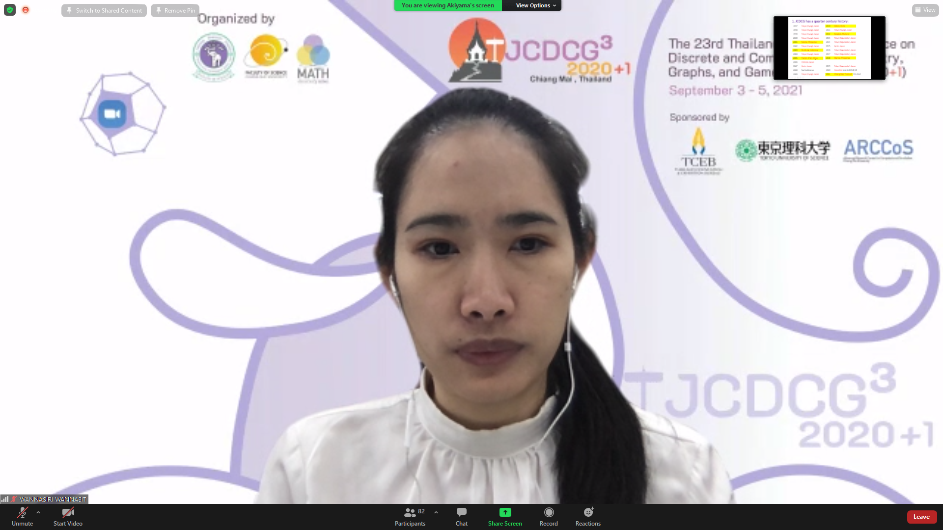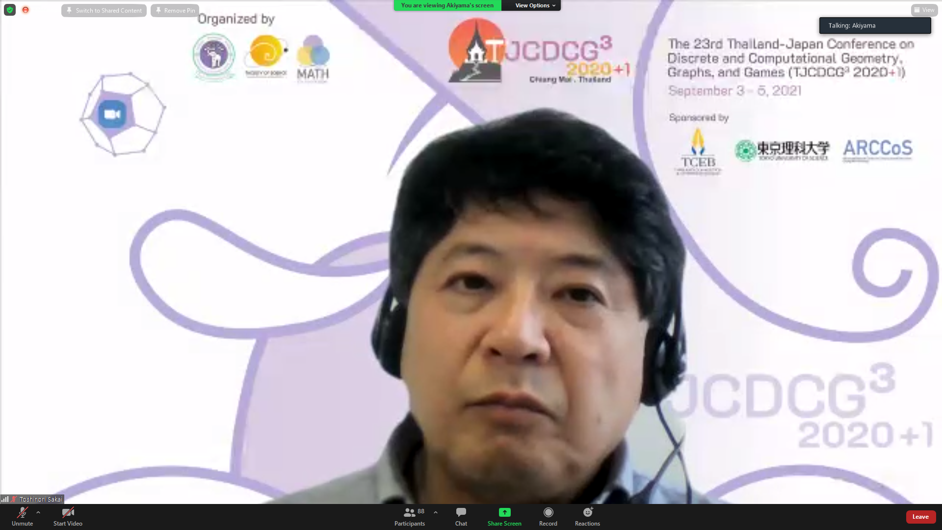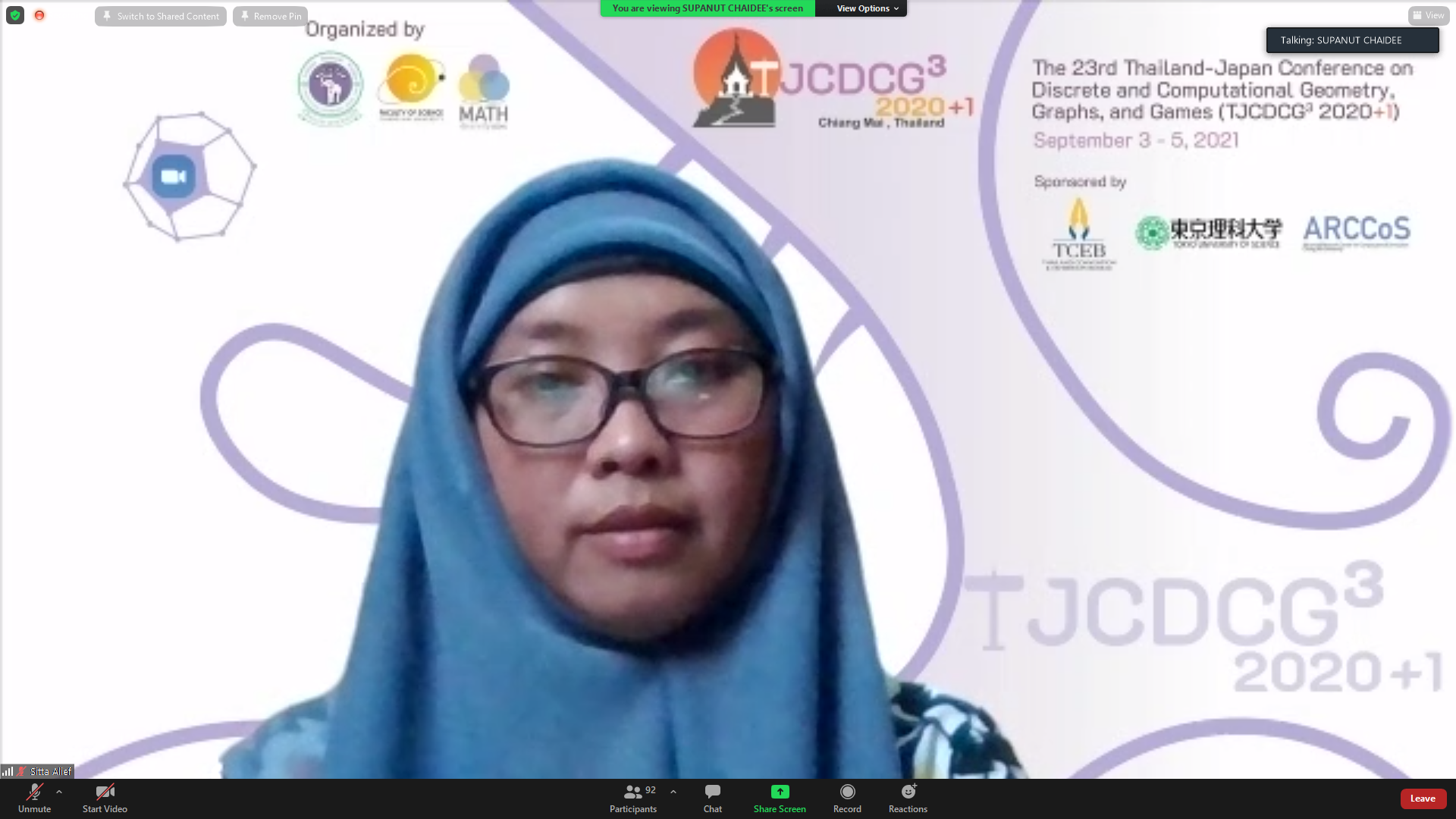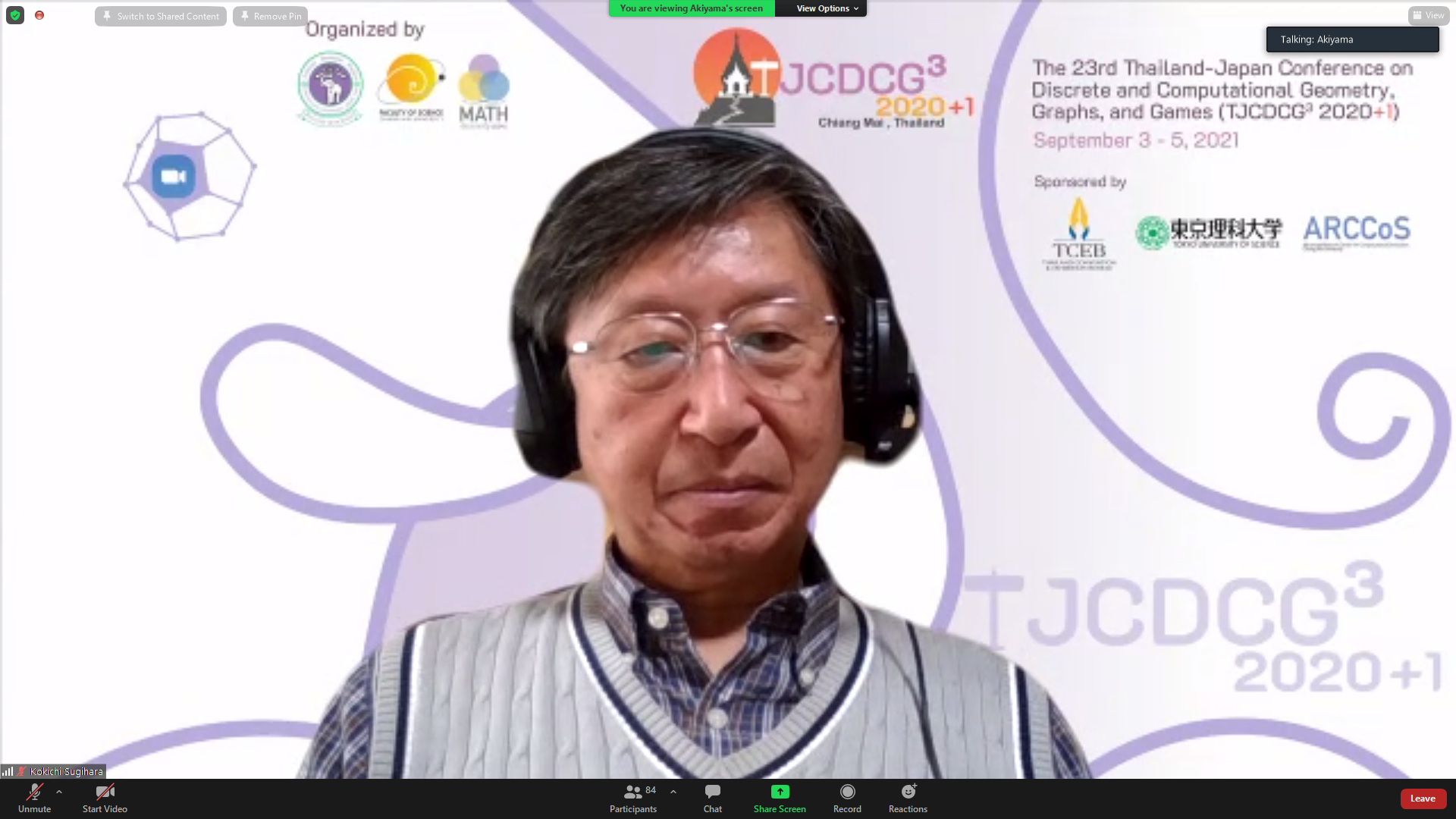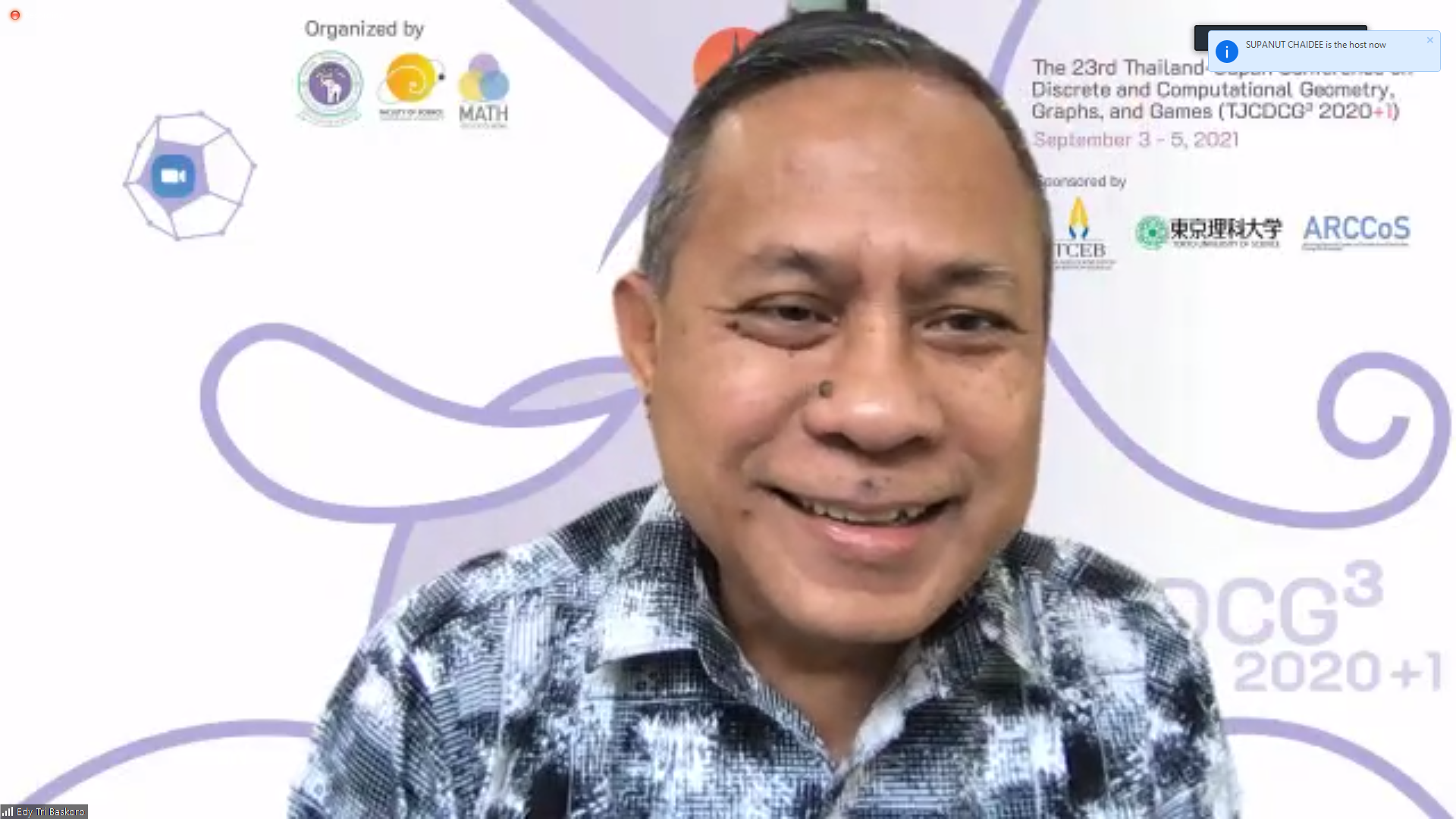 ภาควิชาคณิตศาสตร์ คณะวิทยาศาสตร์ มหาวิทยาลัยเชียงใหม่ ได้รับเกียรติให้เป็นเจ้าภาพจัดการประชุมนานาชาติ The 23rd Thailand-Japan Conference on Discrete and Computational Geometry, Graphs, and Games (TJCDCGGG2020+1) ผ่านระบบออนไลน์ ระหว่างวันที่ 3 - 5 กันยายน 2564 โดยได้รับเกียรติจาก รองศาสตราจารย์ ดร. เกศรินทร์ พิมรักษา รองคณบดีฝ่ายวิจัยและวิเทศสัมพันธ์ คณะวิทยาศาสตร์ เป็นประธานเปิดงาน ในวันที่ 3 กันยายน 2564