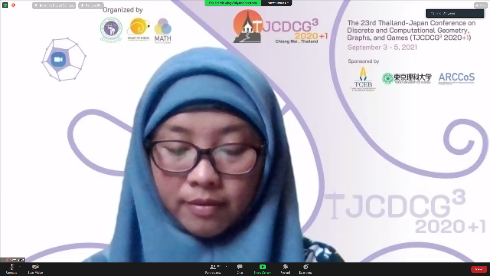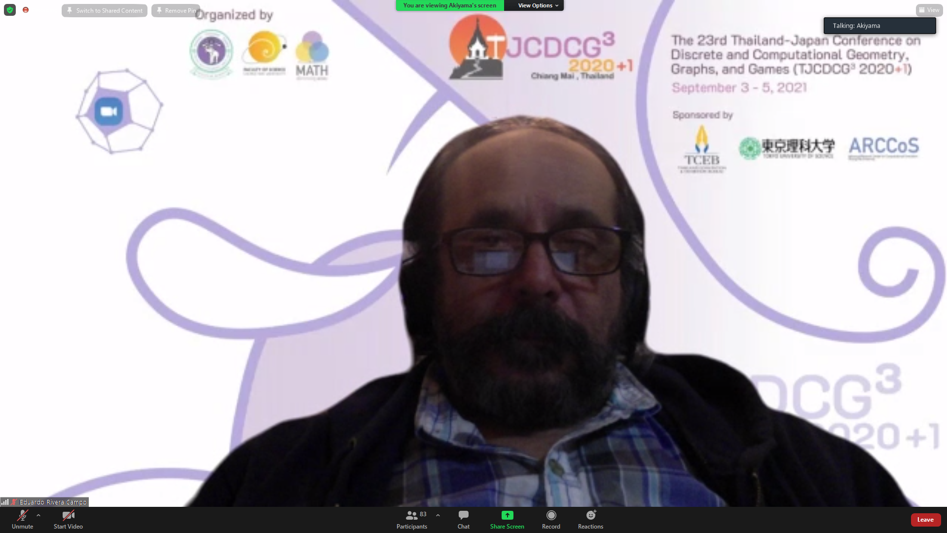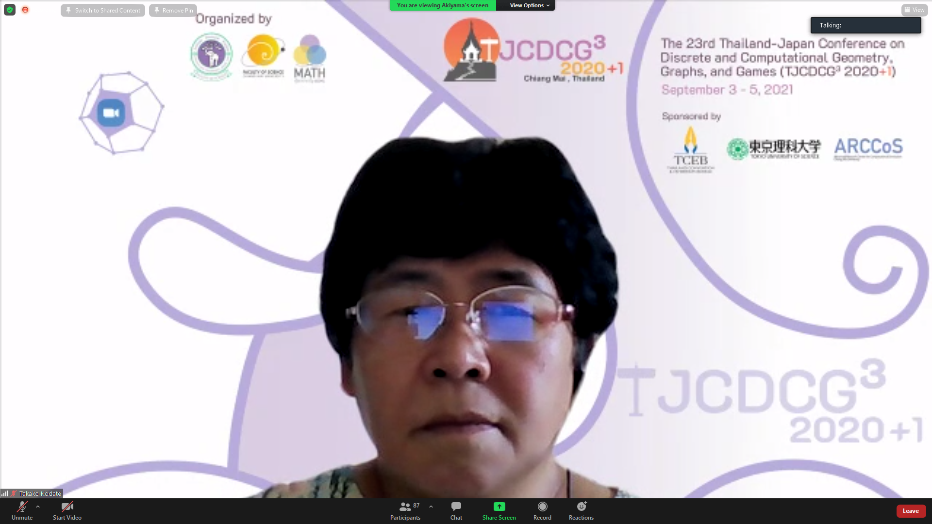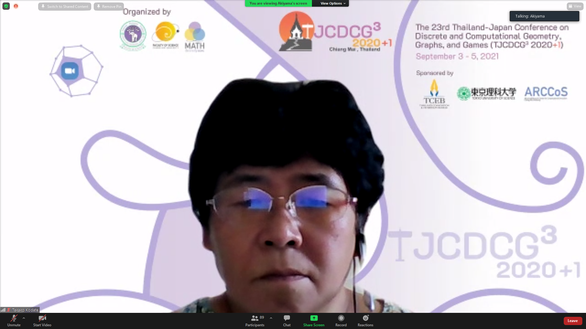 ภาควิชาคณิตศาสตร์ คณะวิทยาศาสตร์ มหาวิทยาลัยเชียงใหม่ ได้รับเกียรติให้เป็นเจ้าภาพจัดการประชุมนานาชาติ The 23rd Thailand-Japan Conference on Discrete and Computational Geometry, Graphs, and Games (TJCDCGGG2020+1) ผ่านระบบออนไลน์ ระหว่างวันที่ 3 - 5 กันยายน 2564 โดยได้รับเกียรติจาก รองศาสตราจารย์ ดร. เกศรินทร์ พิมรักษา รองคณบดีฝ่ายวิจัยและวิเทศสัมพันธ์ คณะวิทยาศาสตร์ เป็นประธานเปิดงาน ในวันที่ 3 กันยายน 2564