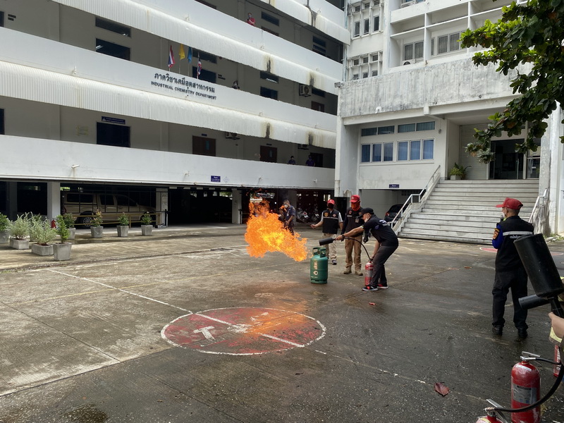 ภาควิชาเคมีอุตสาหกรรมอบรมเตรียมความพร้อมการดับเพลิงเบื้องต้นและซ้อมอพยพจากภัยพิบัติ
