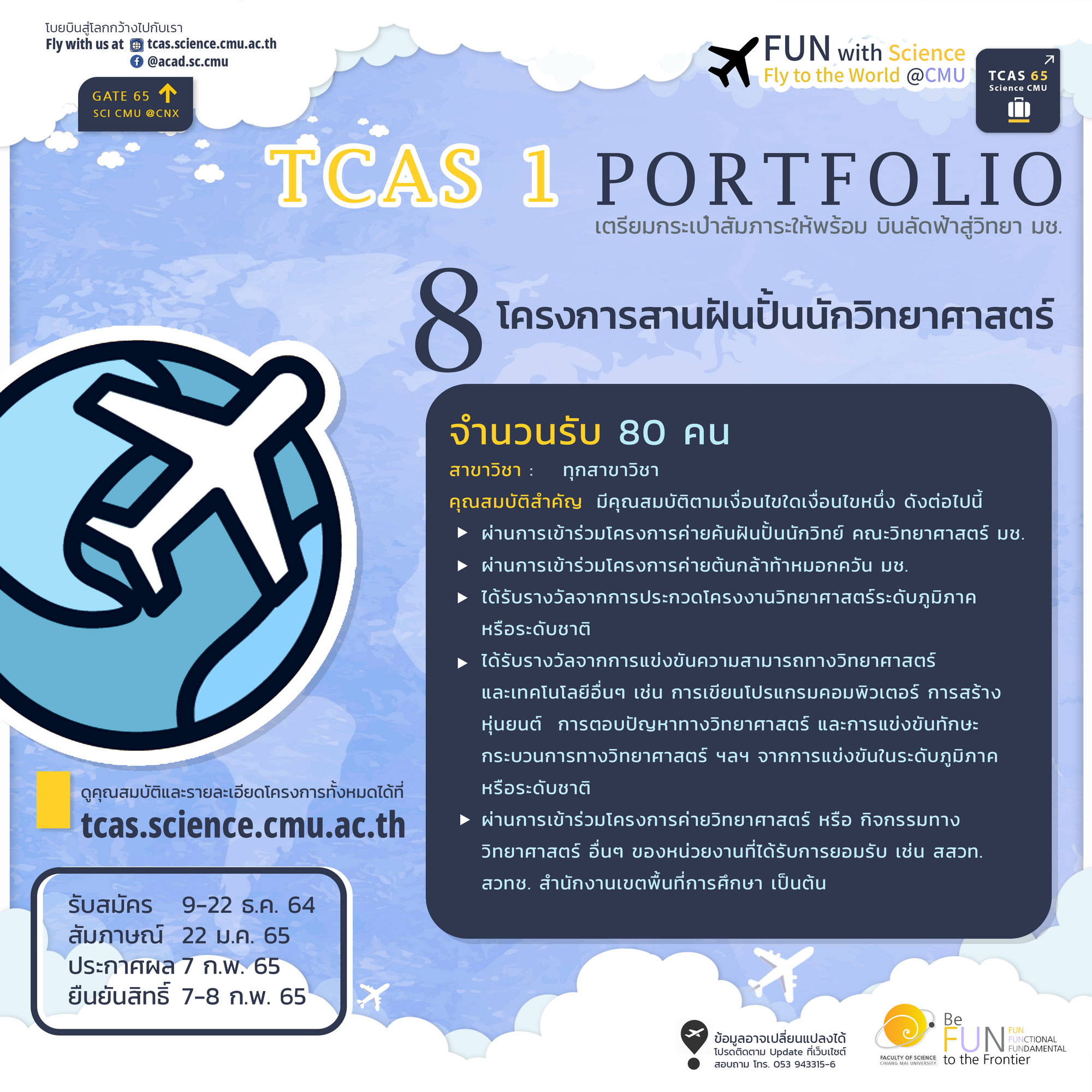 TCAS รอบที่ 1 แบบที่ 1 แฟ้มสะสมผลงาน Portfolio ระดับปริญญาตรี ปีการศึกษา 2565 คณะวิทยาศาสตร์ มหาวิทยาลัยเชียงใหม่ (การรับนักเรียนที่ดำเนินการโดยคณะ) จำนวน 8 โครงการ